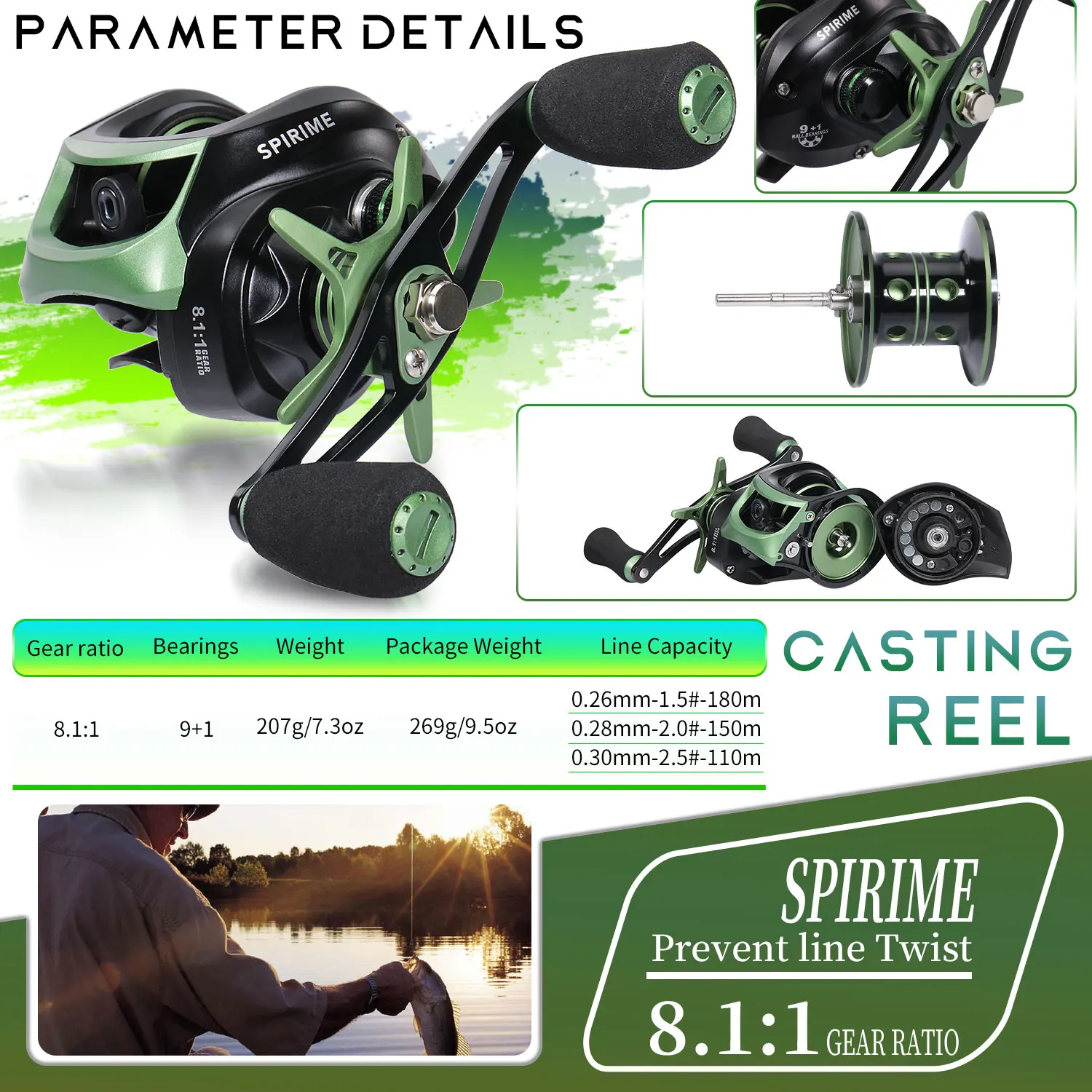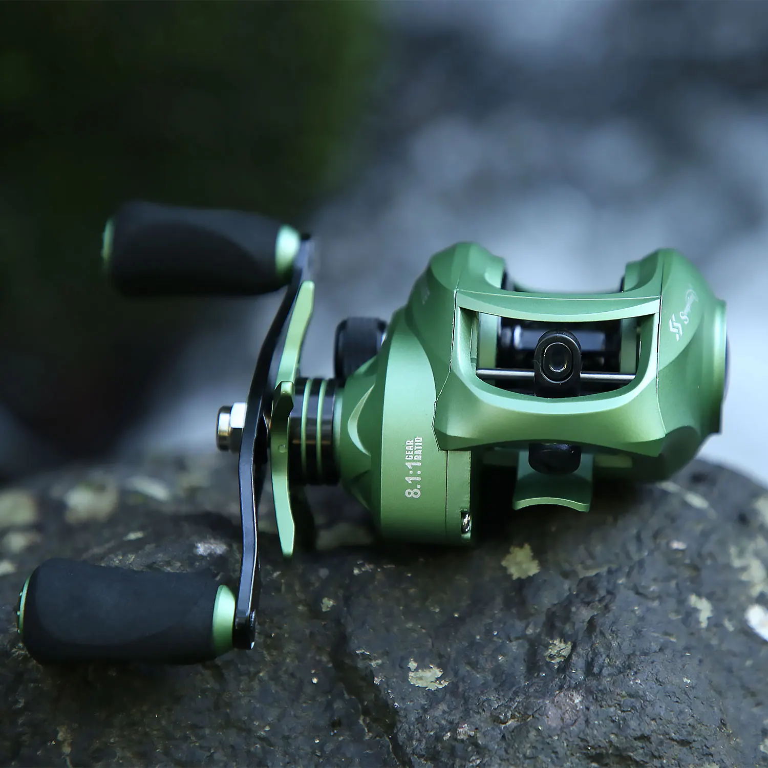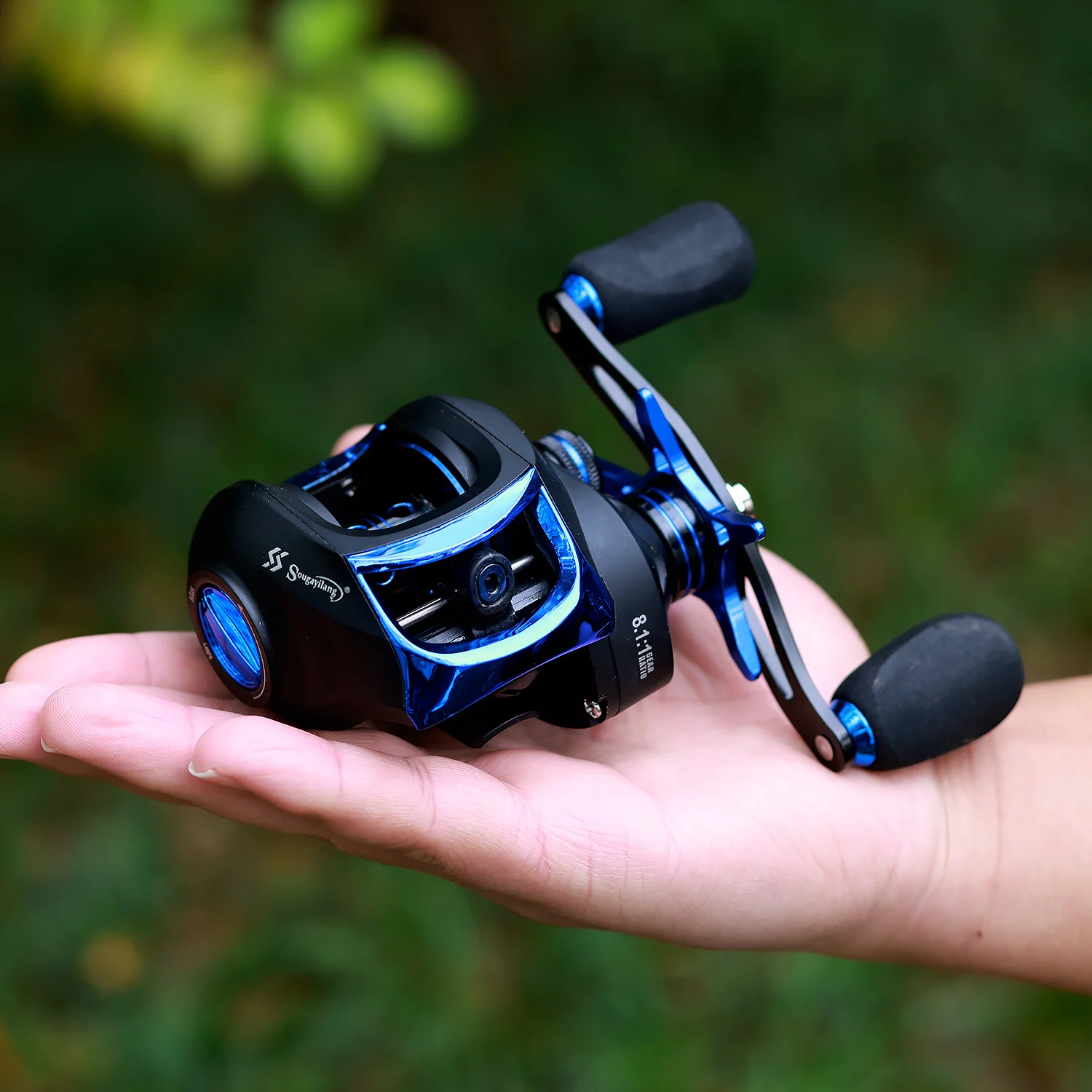 Sougayilang Baitcast Carrete de Pesca 7,2: 1 Relación de Engranaje Sistema de Freno Magnético Carrete de Pesca Max Drag 8kg Carrete de Aluminio Aparejos de Pesca