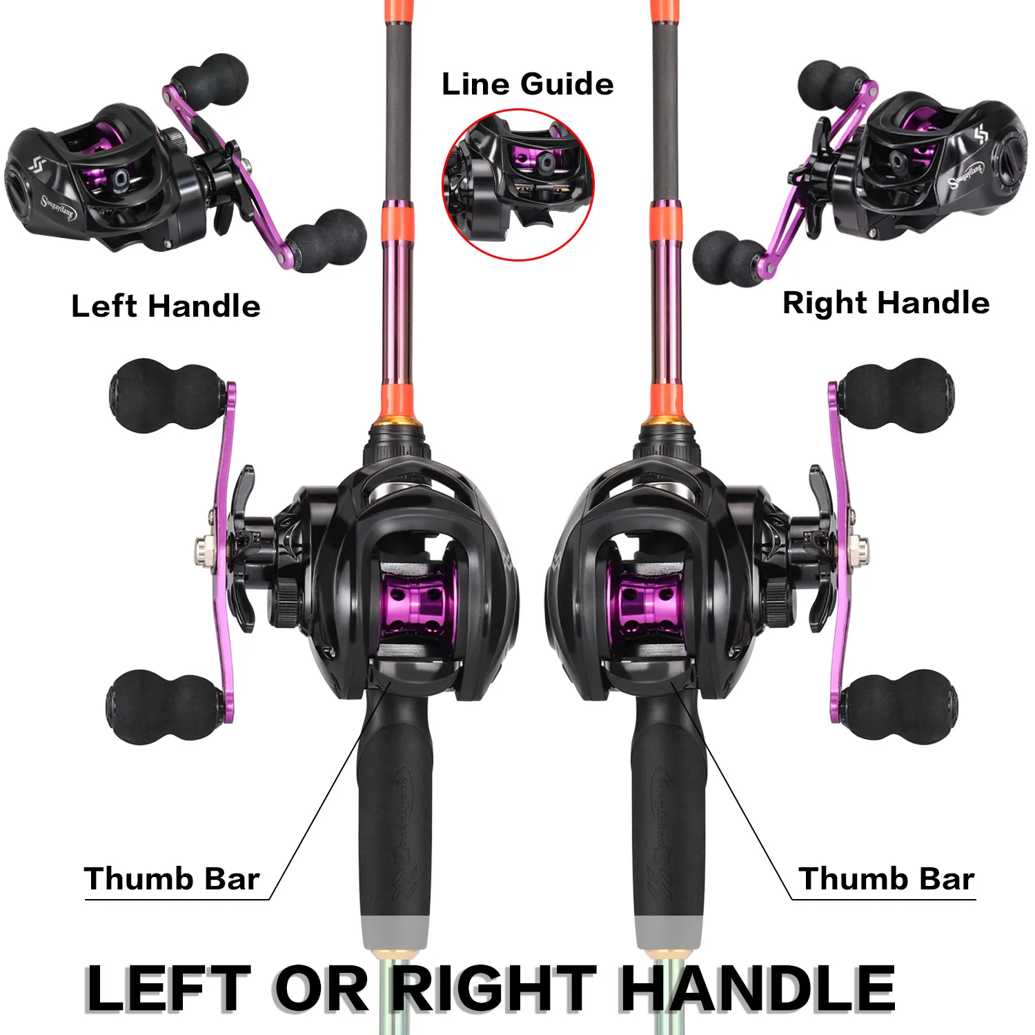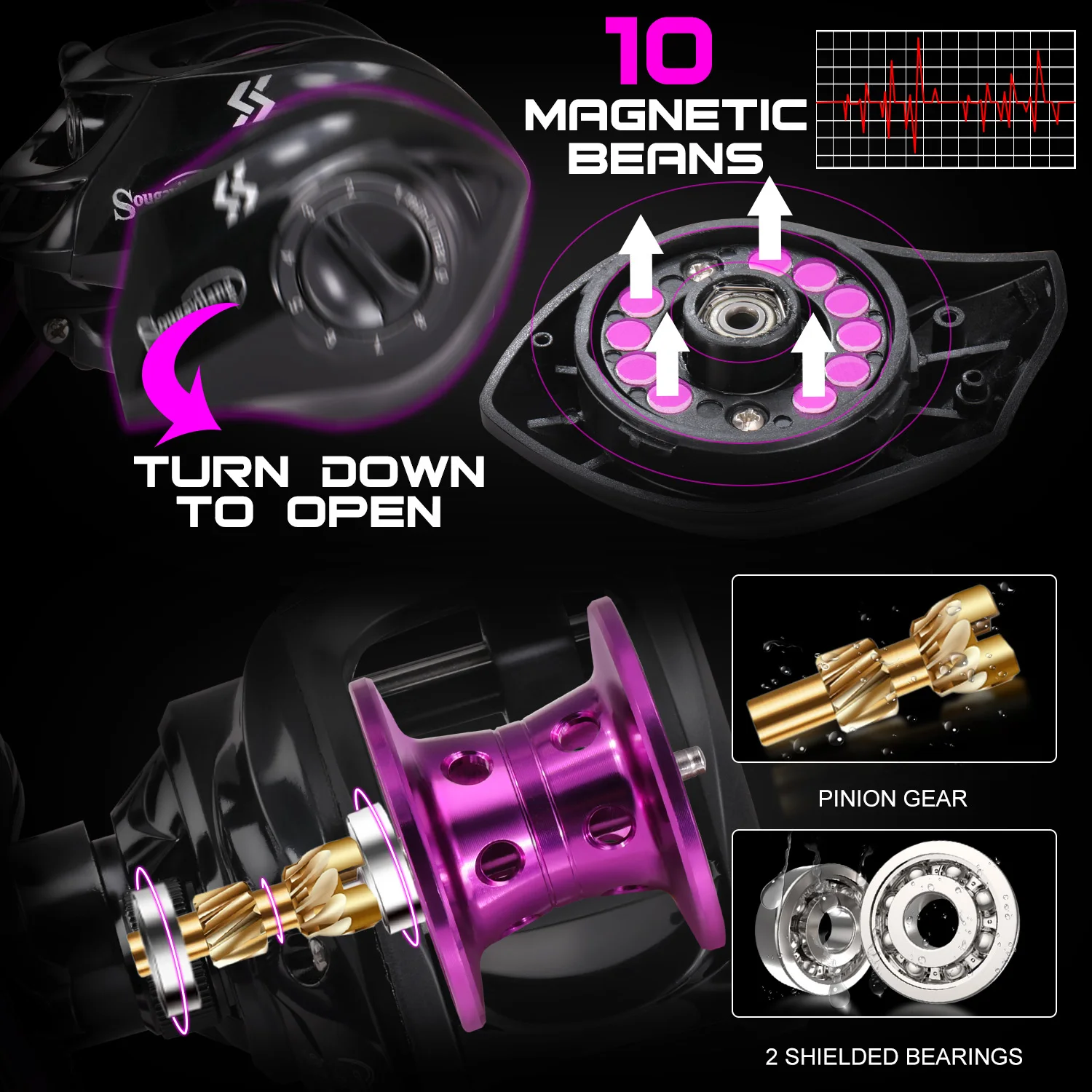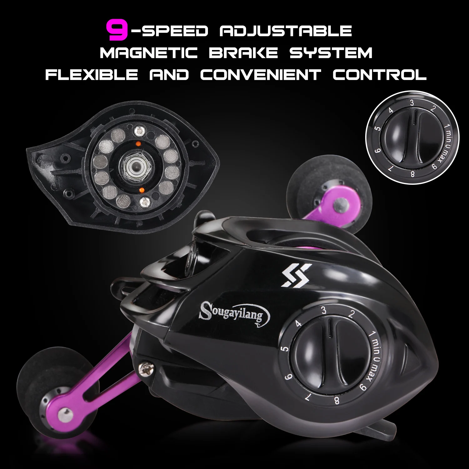 Carrete de pesca Sougayilang Purple Baitcasting 7,2: 1 relación de engranaje de alta velocidad carrete de pesca súper suave Max Drag 10kg carretes de pesca