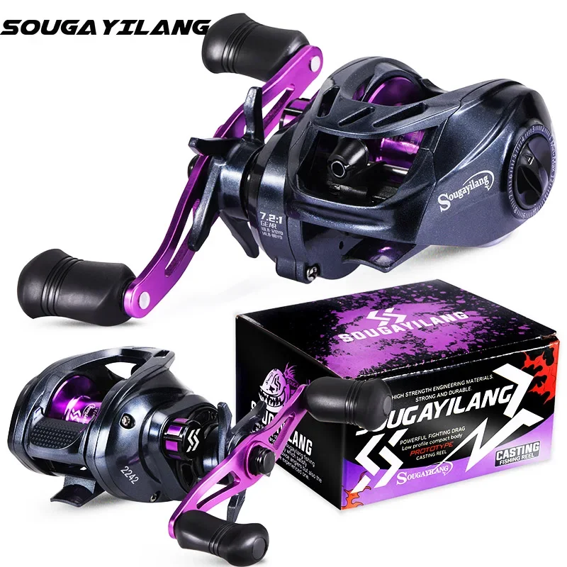Carrete de pesca Sougayilang Purple Baitcasting 7,2: 1 relación de engranaje de alta velocidad carrete de pesca súper suave Max Drag 10kg carretes de pesca