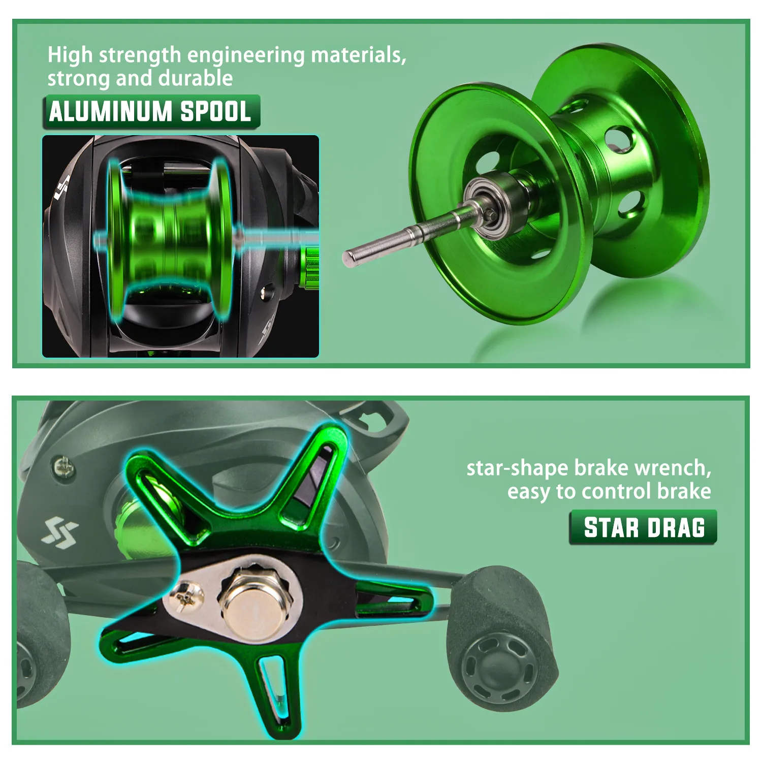 1.7.2:1 Relación de engranaje para un lanzamiento suave y lucha con peces grandes.