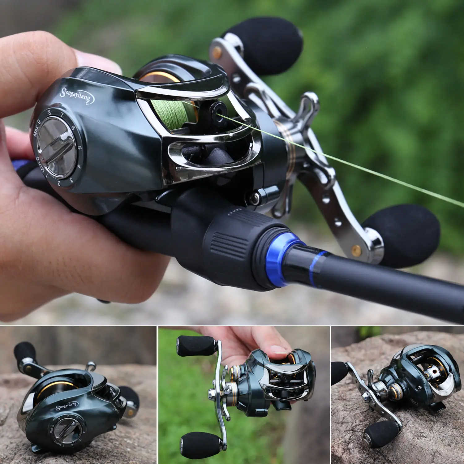 Un sistema de freno magnético ajustable externamente y una perilla de tensión prácticamente eliminan las pestañas mientras son rápidos y fáciles de ajustar.