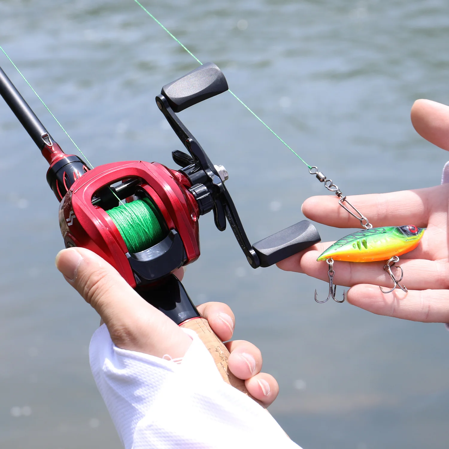 Powerful & Good Looking - The whole baitcasting fishing reel is designed with red, CNC Machined Aluminium handle, has right-hand casting reel and left-hand casting reel, can be suitable for different demands for fishing, and Drag System offers incredible stopping power up to 8kg.