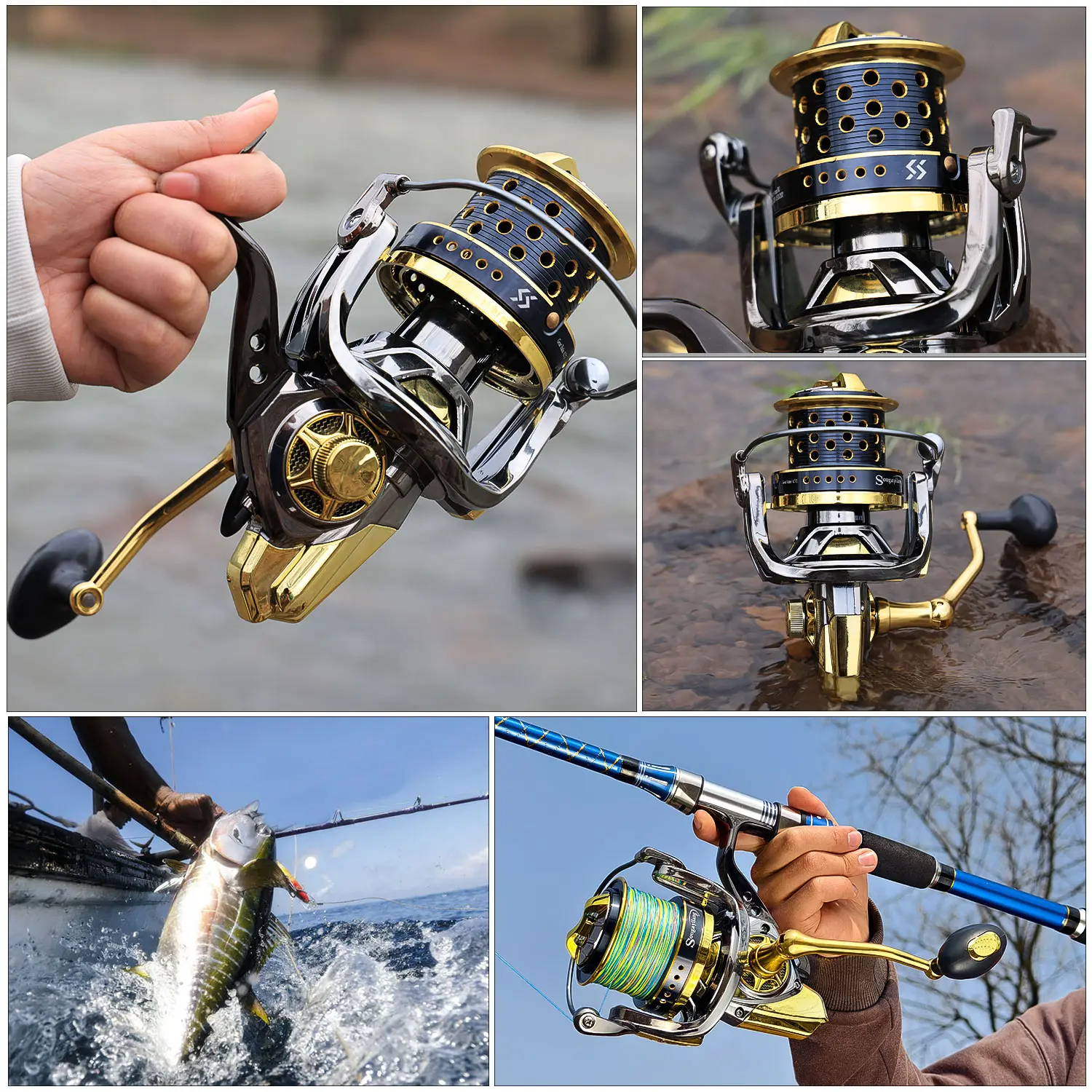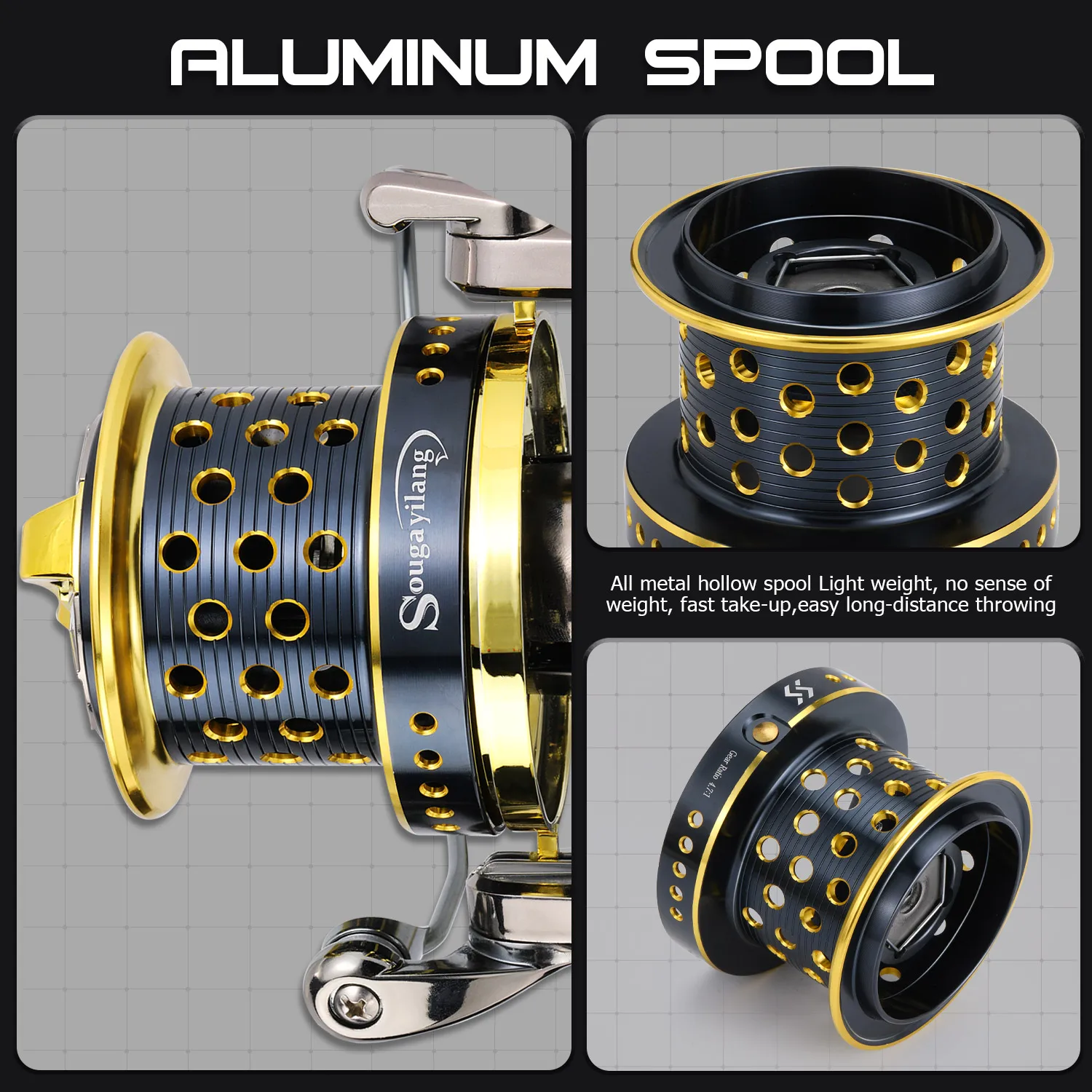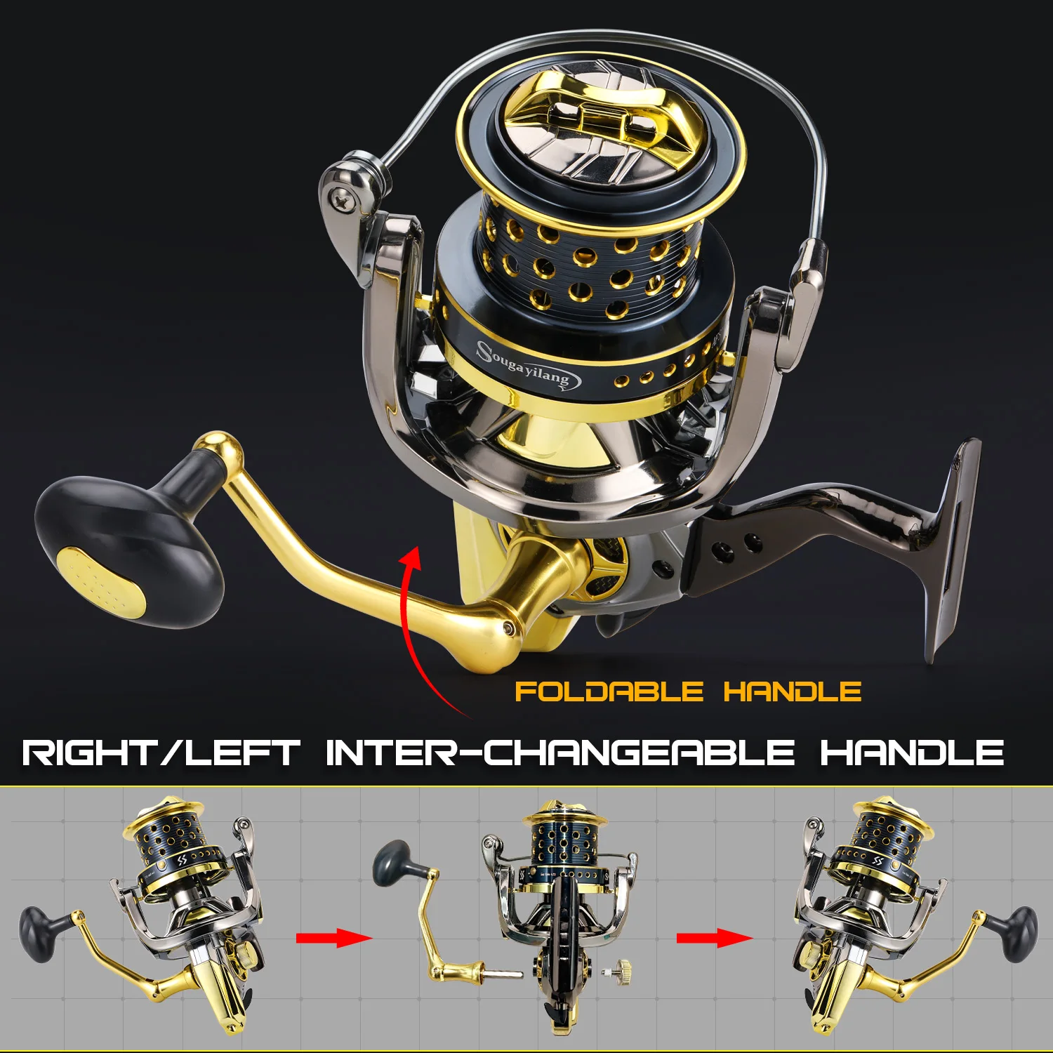 Sougayilang 10000 Carrete de Pesca de Carpa 10 + 1 BB 4,7: 1 Carrete de Alta Velocidad de Aleación de Aluminio Anti-colisión Max Drag 20KG Carrete de Pesca