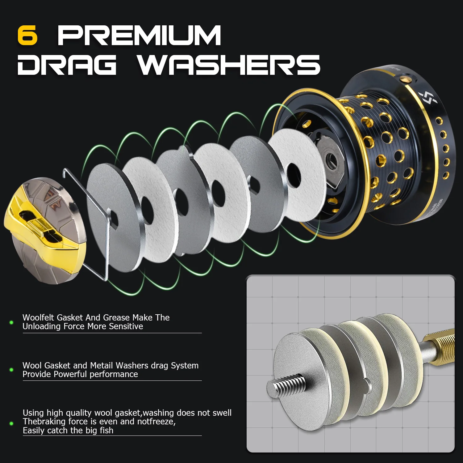 5. Engranaje de alta resistencia con sistema de arrastre de cinco estrellas, precisión y bajo ruido