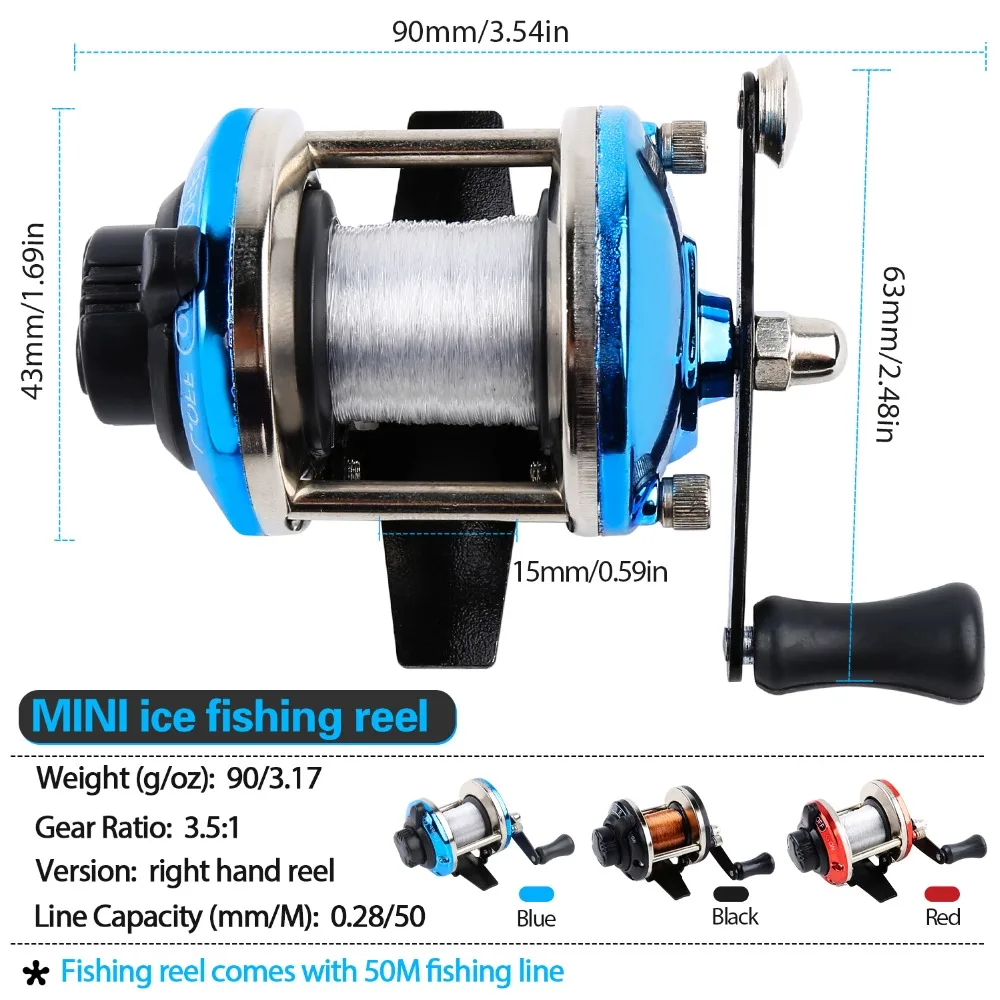 Sougayilang-carrete de pesca en hielo, accesorio con Ratio de engranaje 3,5: 1, Mini carrete de arrastre de 3 colores, bobina de Baitcasting, viene con línea de nailon de 50M