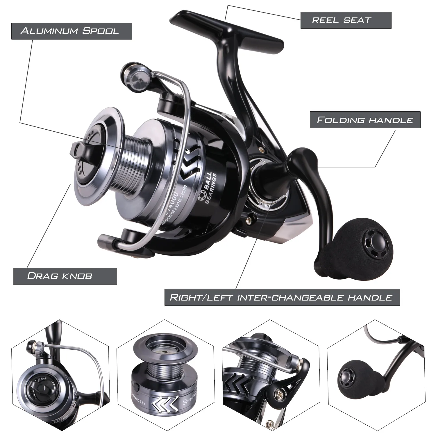 Sougayilang-carrete de pesca giratorio 1000: 1, alta velocidad, Ratio de engranaje, arrastre máximo de 8kg, para pesca de trucha y lubina, nuevo, 6000-5,2