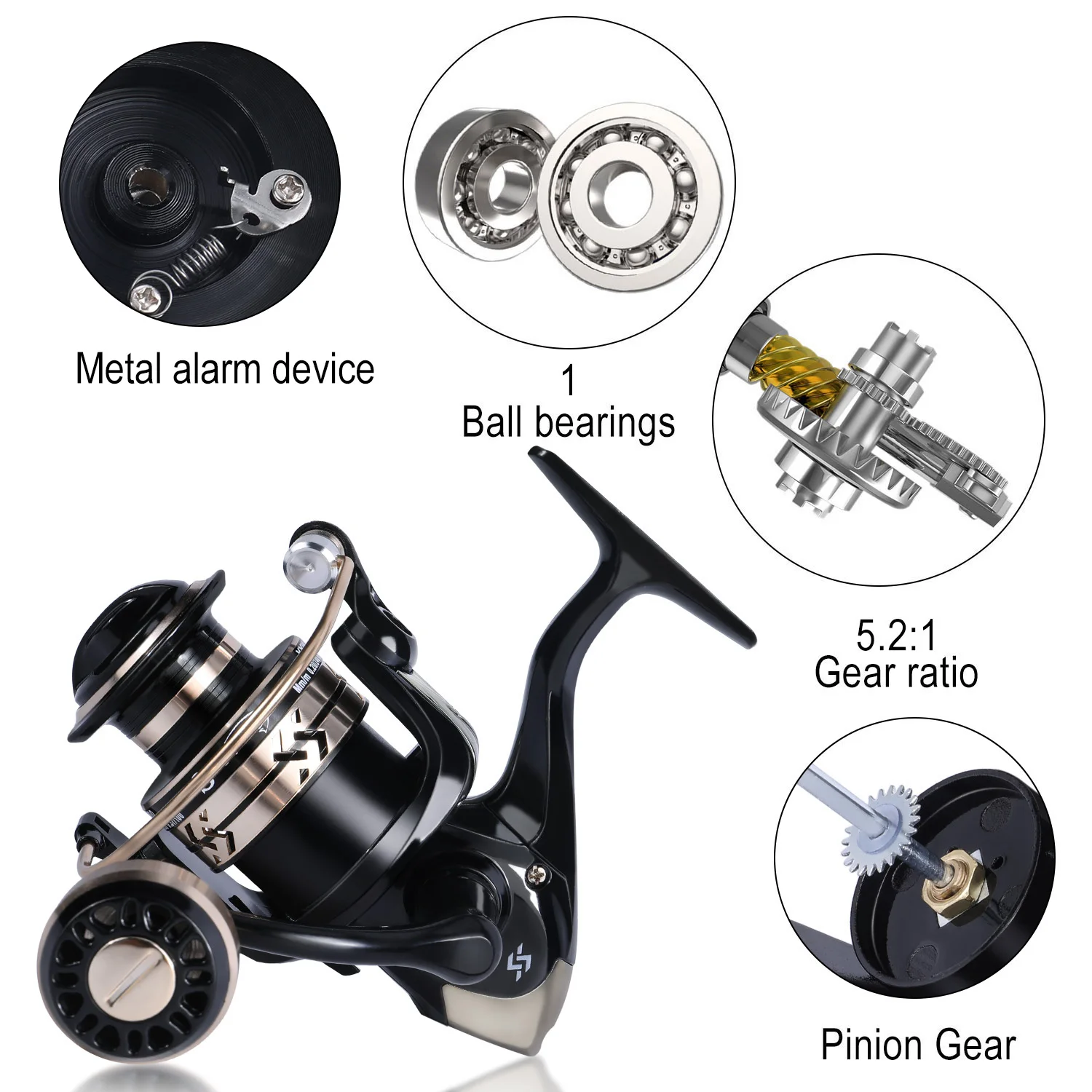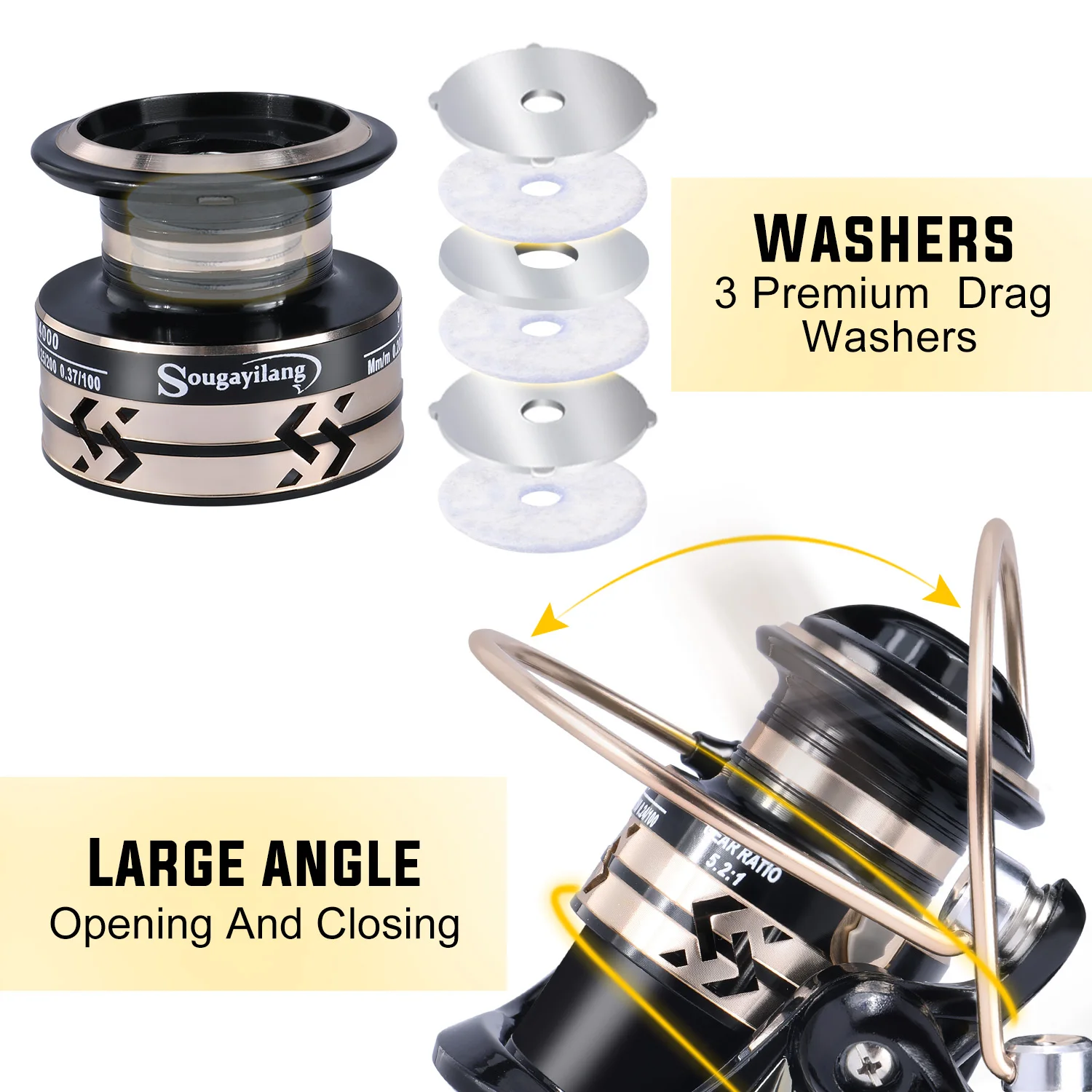 Carrete de pesca giratorio Sougayilang 1000-4000 5,2: 1 Relación de engranaje Max Drag 22LB Carrete con carrete de pesca gratis para pesca de carpa