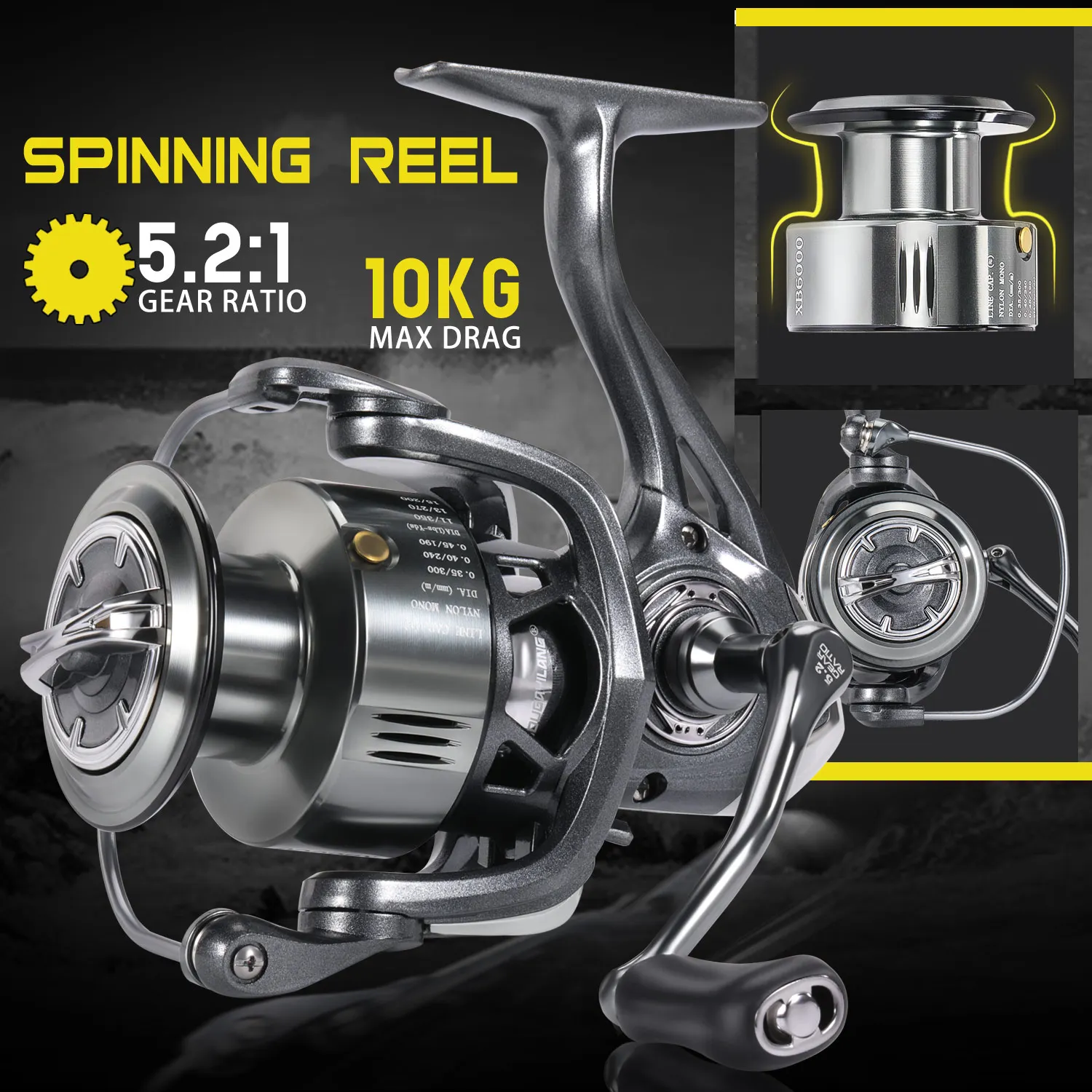 Sougayilang-carrete de pesca giratorio, 1000-6000, señuelo de pesca, relación de engranaje 5,2: 1, arrastre máximo de 10kg para Jigging en agua salada