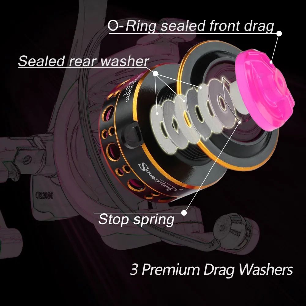 Sougayilang-carrete de pesca giratorio 12 BB 5,0: 1 para agua dulce, serie 1000-3000, carrete de pesca de carpa para pesca de lubina