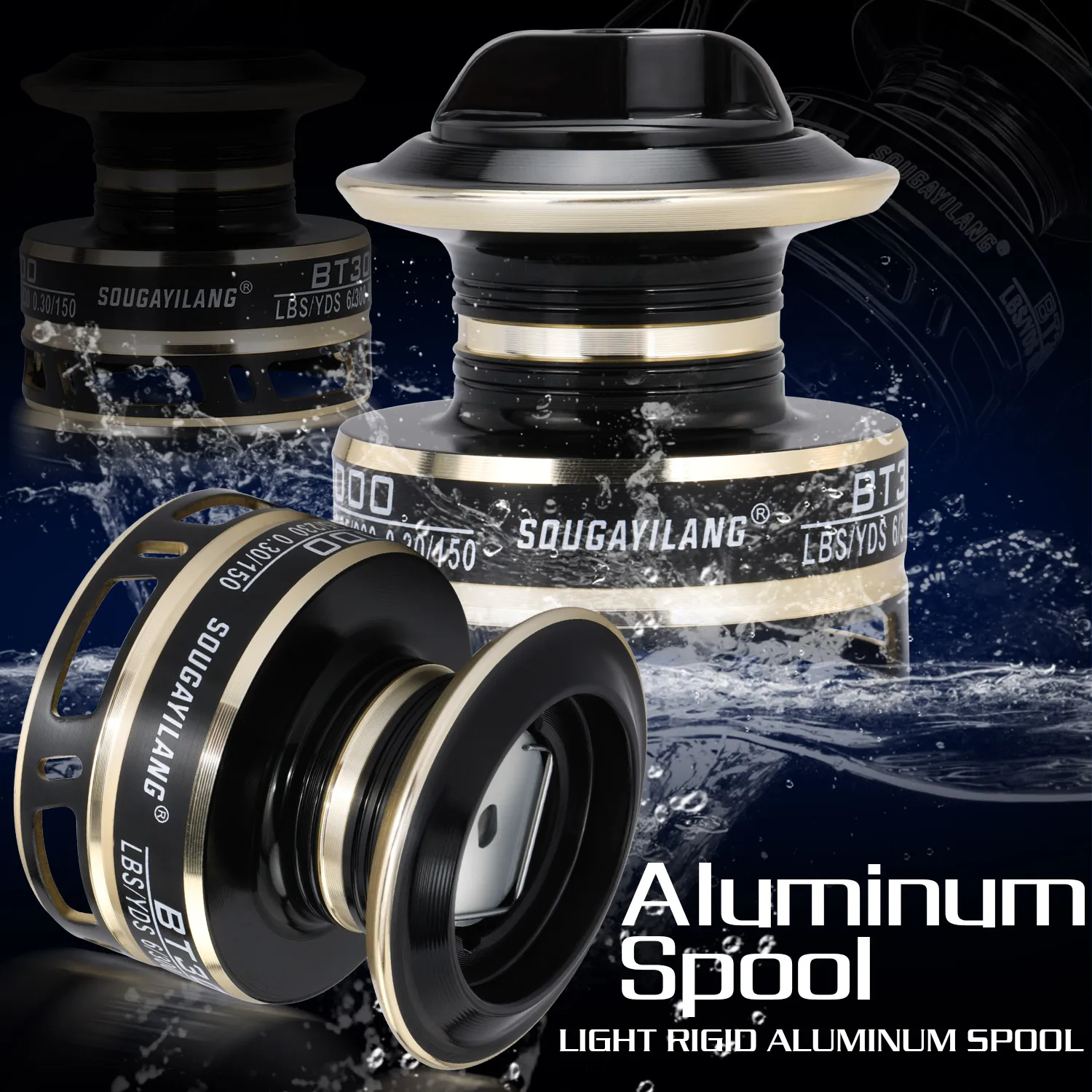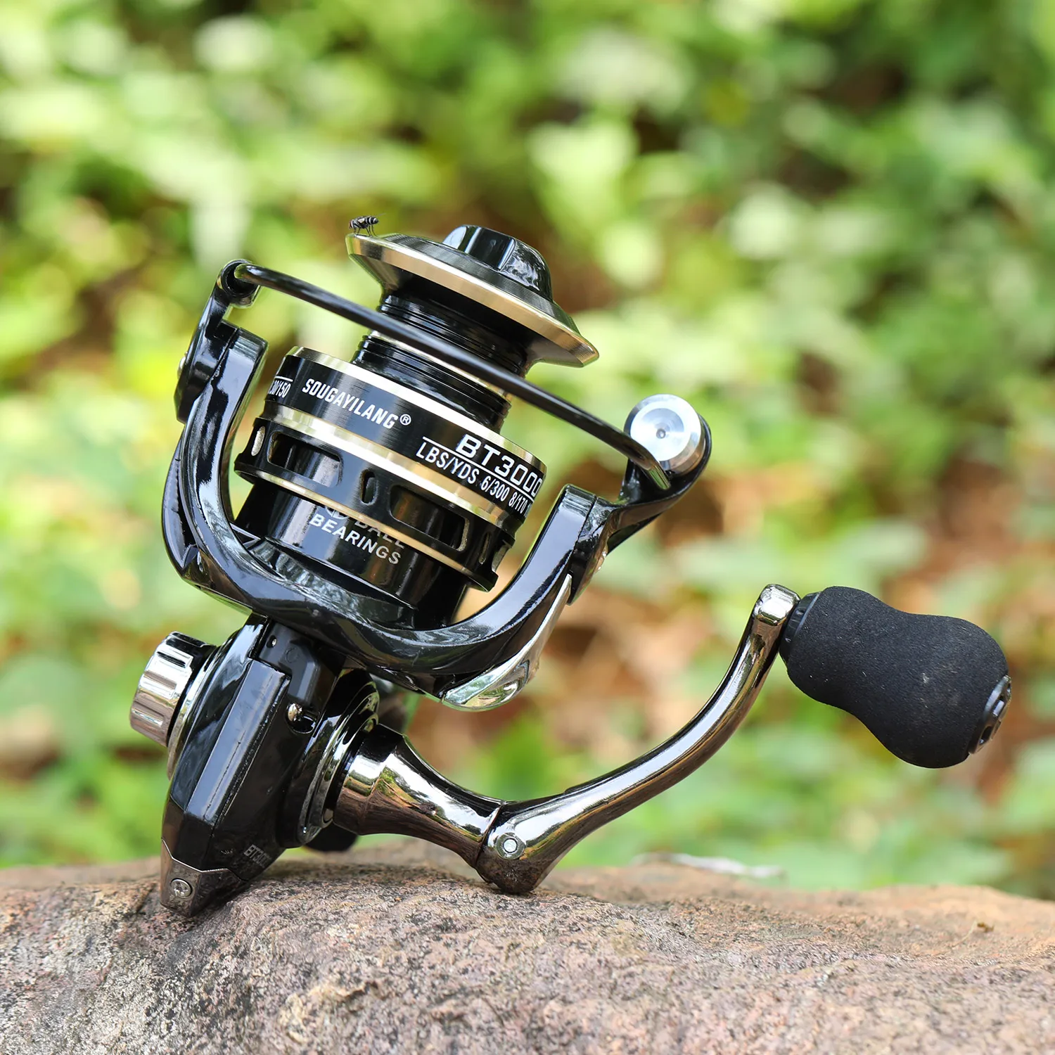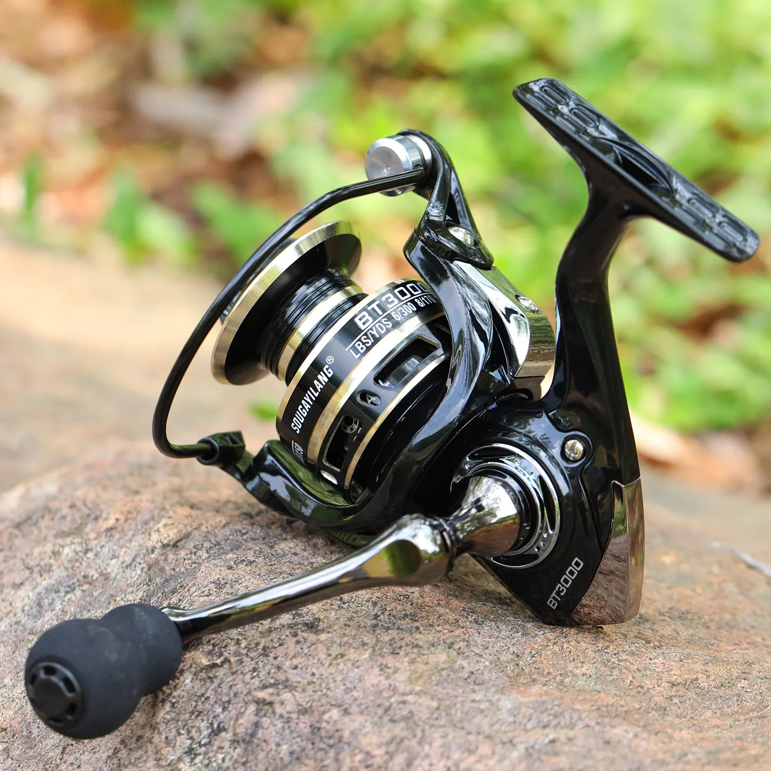Sougayilang 2000-3000 Carrete de Pesca giratorio 5,2: 1 Relación de engranaje Max Drag 9kg Carrete de carpa Carrete de aluminio con línea de pesca de 500m Pesca