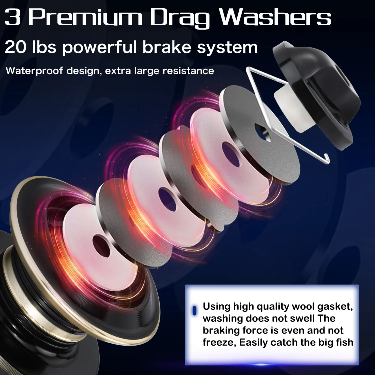 Arrastre máximo fuerte de 3,12 KG, la fuerza de frenado es uniforme y no se atasca, desafía fácilmente a los peces grandes.