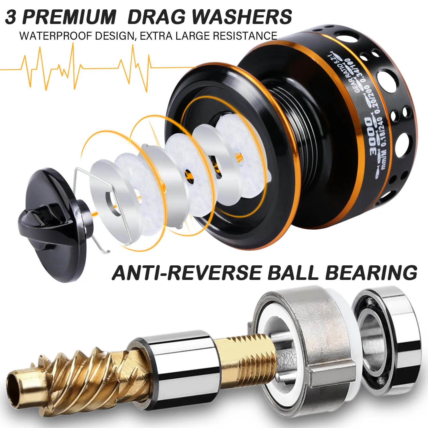 Sougayilang 3000 tamaño carrete de pesca giratorio 13BB 5,2: 1 Relación de alta velocidad mango de corcho carrete de pesca MAX Drag 5KG carrete de pesca de carpa