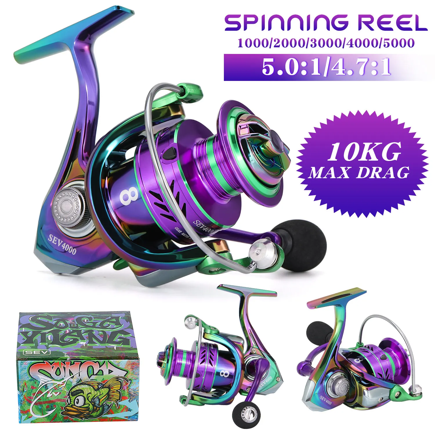 Sougayilang Carrete de Pesca 1000-5000 Metal EVA Grip Spinning Reel 5,2: 1 Relación de alta velocidad Max Drag 12kg Carrete de Pesca de carpa Pesca