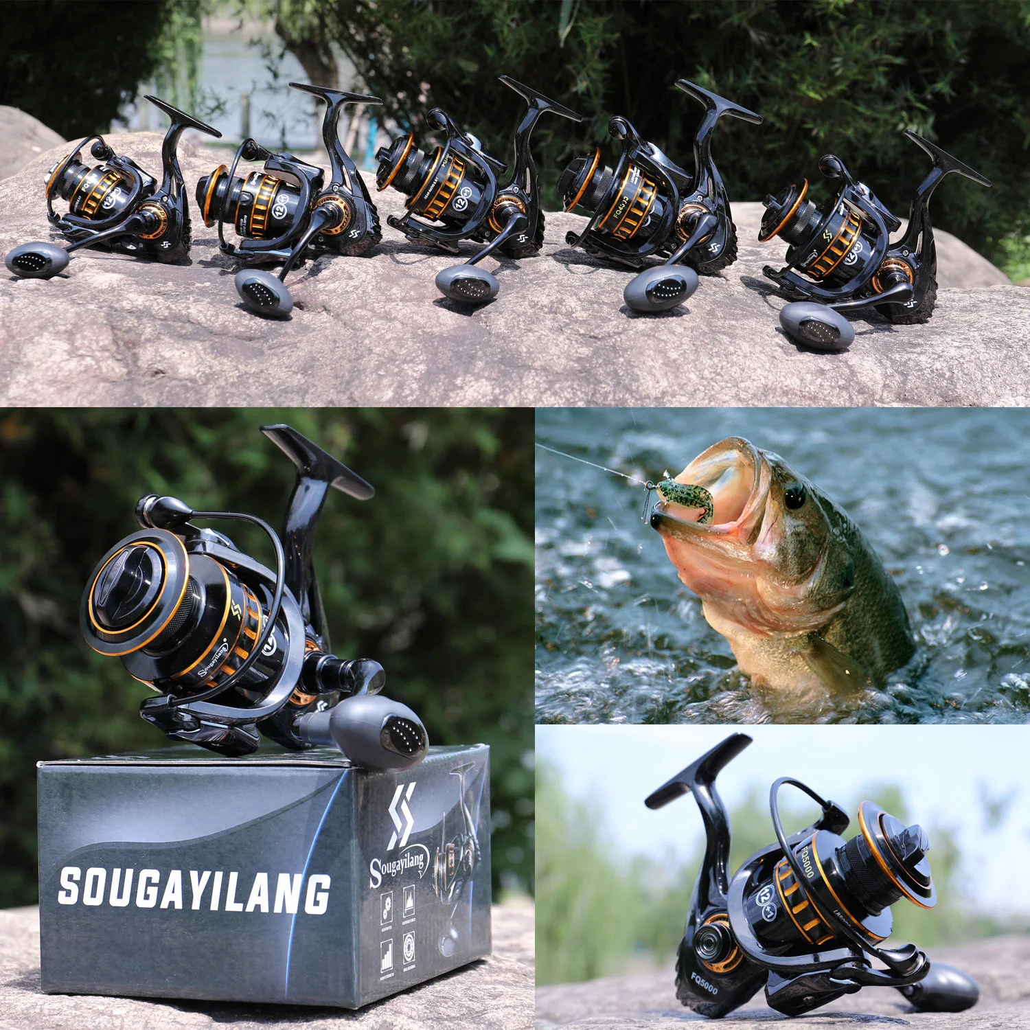 Carrete de pesca giratorio Sougayilang 1000-5000 carretes de carrete de Metal 5,5: 1 relación de engranaje Max Drag 12kg carrete giratorio para pesca de agua salada
