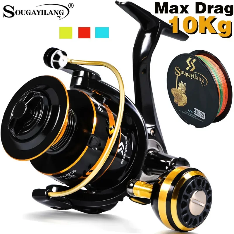 Sougayilang Carrete de Pesca Giratorio, Engranaje de Transmisión de Aleación Fundida de Alta Resistencia, Carrete de Aluminio, Carrete Giratorio de Agua Salada y Dulce