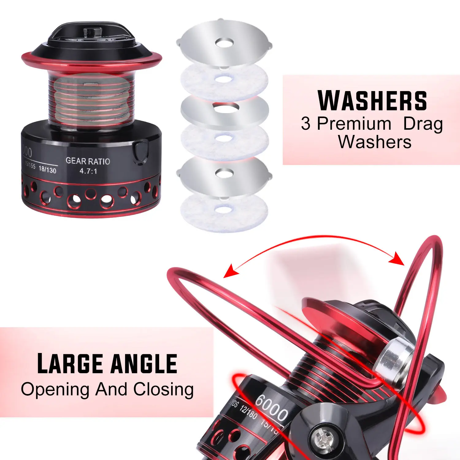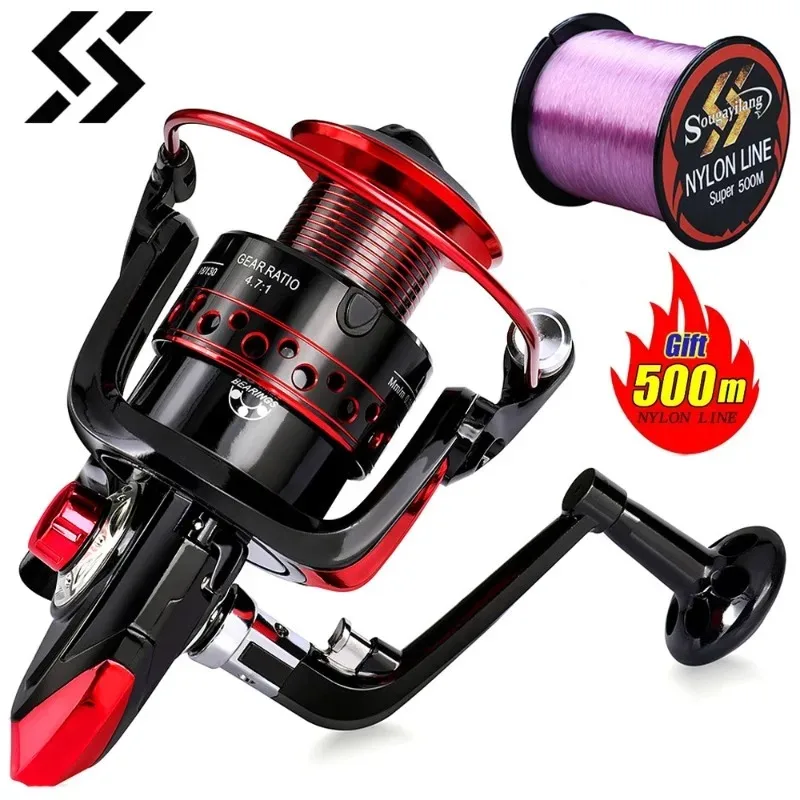 Sougayilang-carrete de Pesca giratorio, bobina de aleación de aluminio 13 + 1BB, arrastre máximo de 15kg, 2000 m, 7000-500