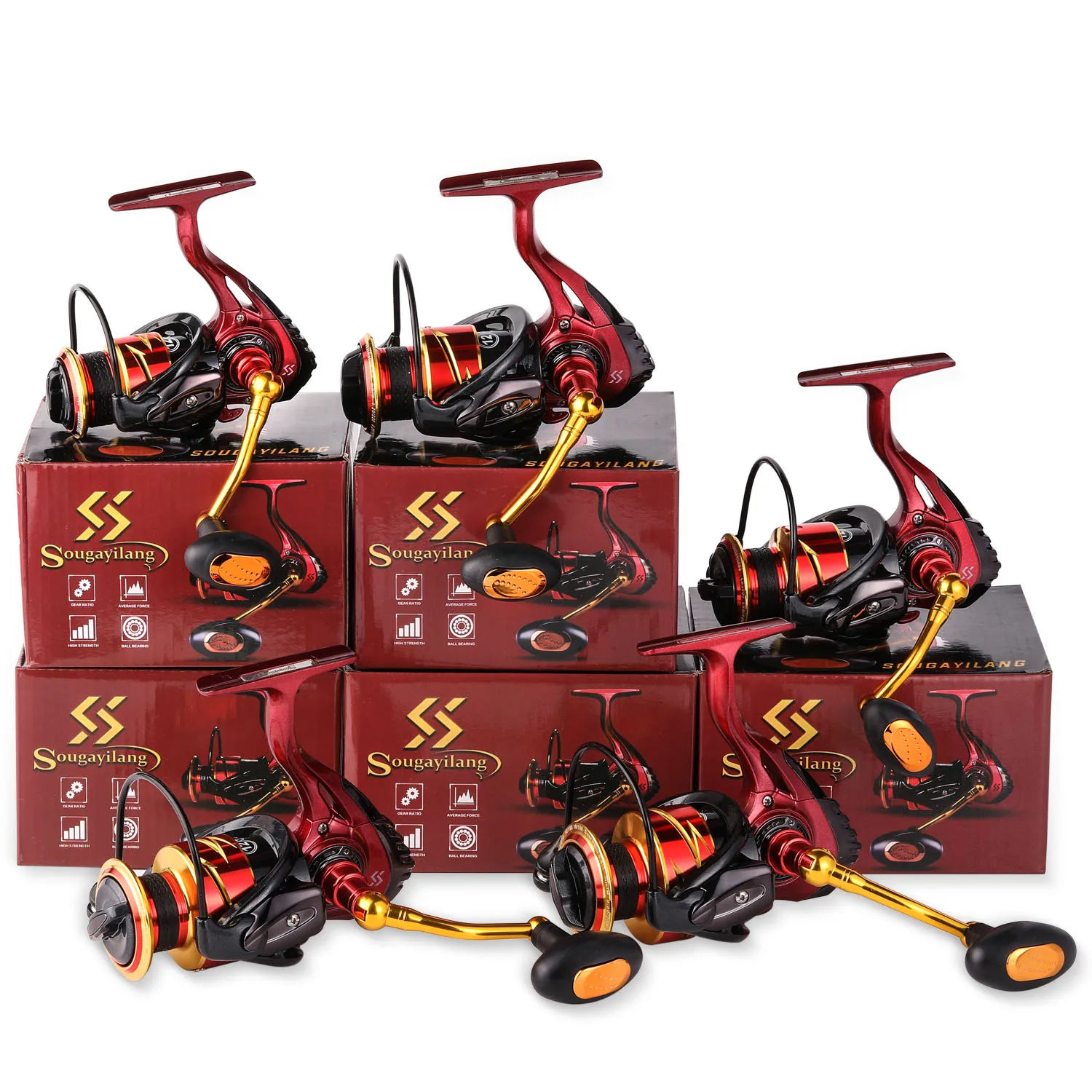Sougayilang 1000-5000 carrete de pesca giratorio de Metal 12 + 1BB 5,5: 1 carrete de pesca de relación de alta velocidad con carrete de repuesto gratis aparejos de pesca