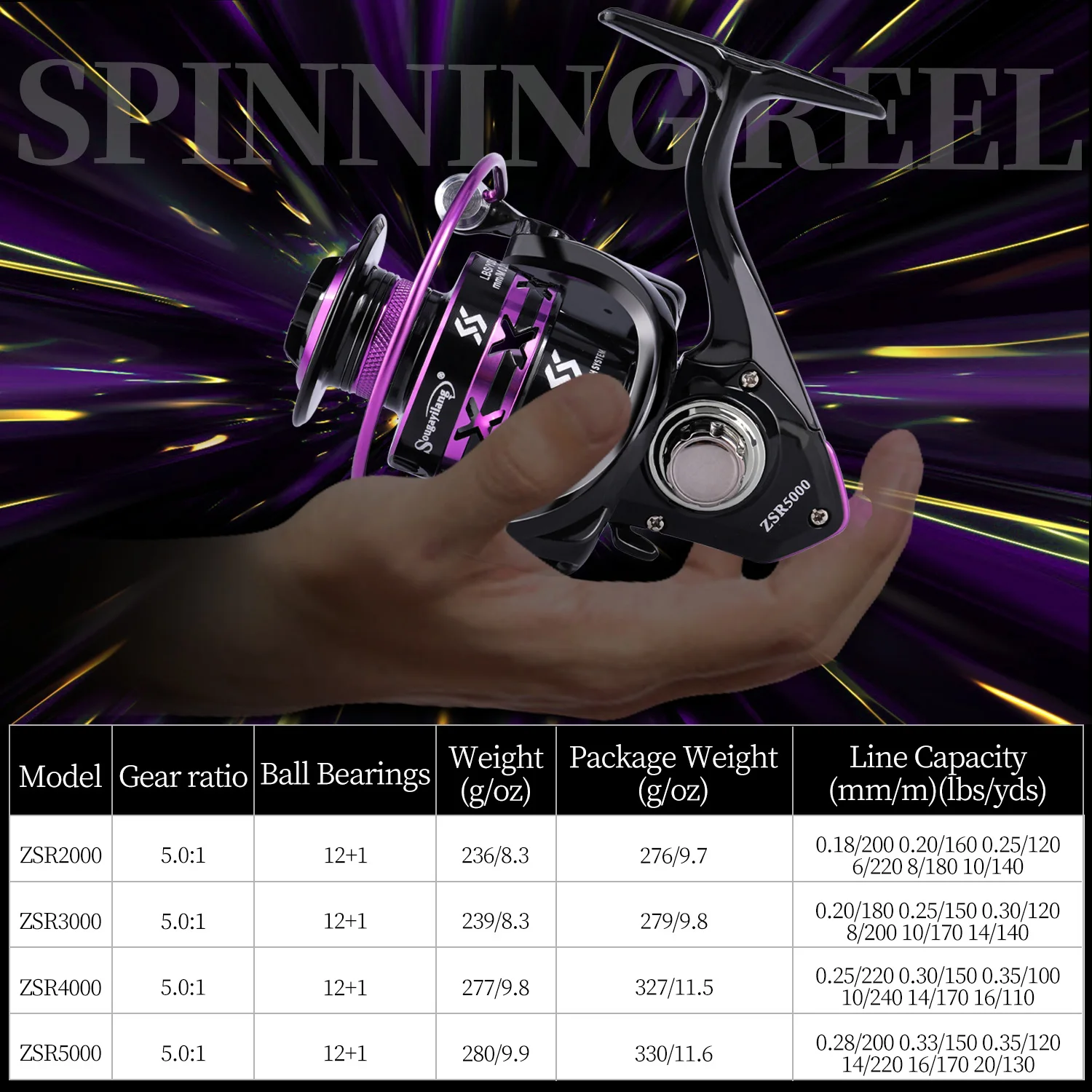 Modelo ZSR4000: 0,25mm/220m 0,30mm/150m 0,35mm/100M