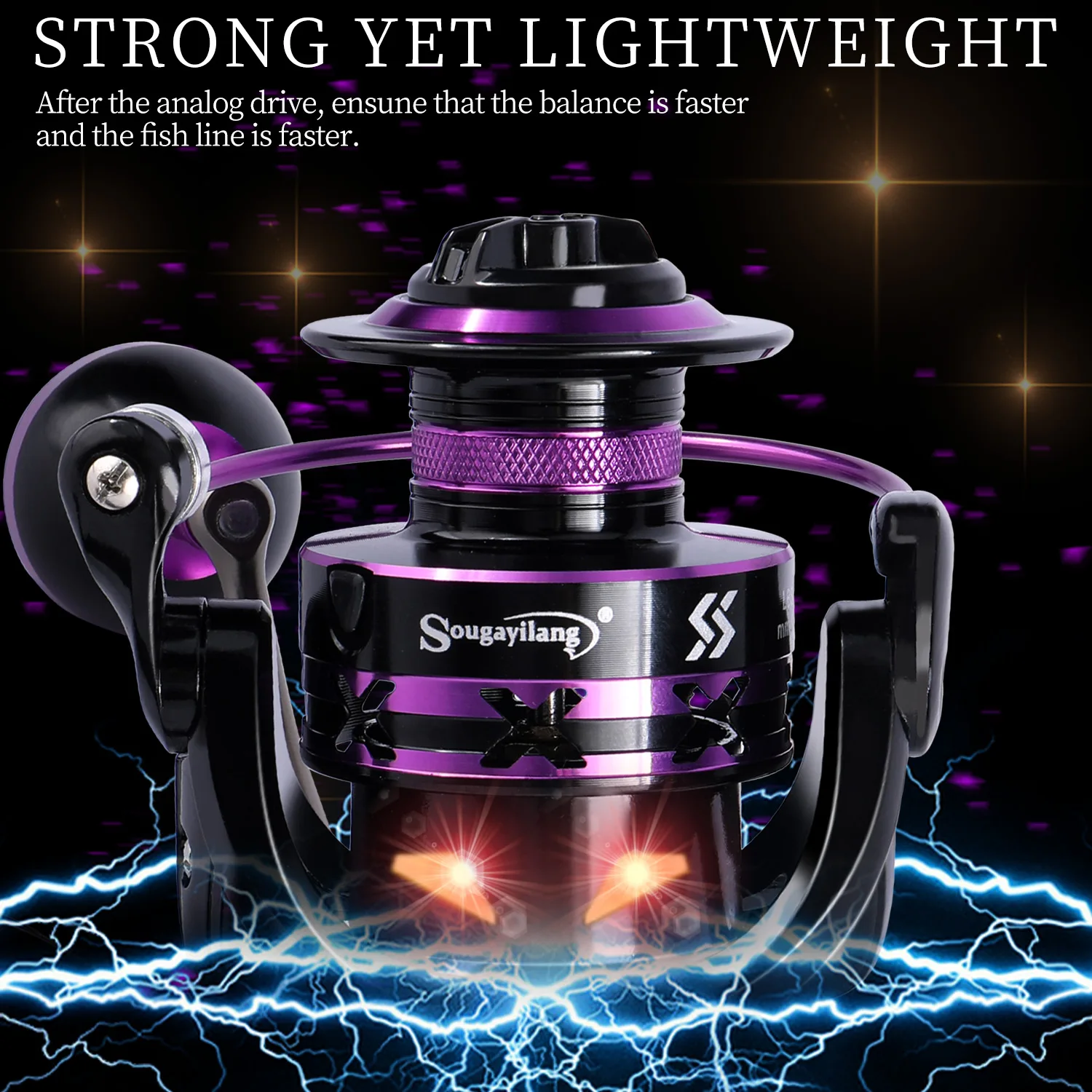 Sougayilang Carrete de Pesca Giratorio 5,0: 1 Púrpura 2000-5000 Carrete de Aluminio Carrete de Pesca de Carpa Max Drag 12Kg Aparejos de Pesca