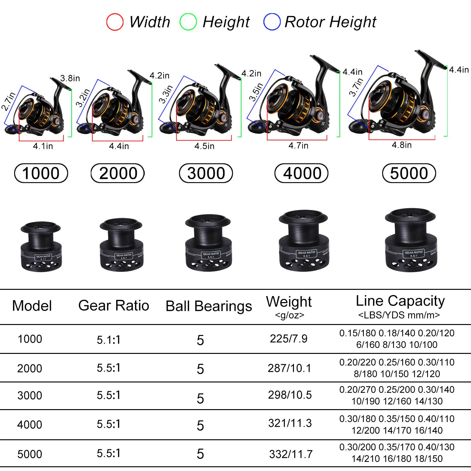Capacidad de la línea (LBS-YDS)5000: 0,30/200/0,35/170/0,40/130