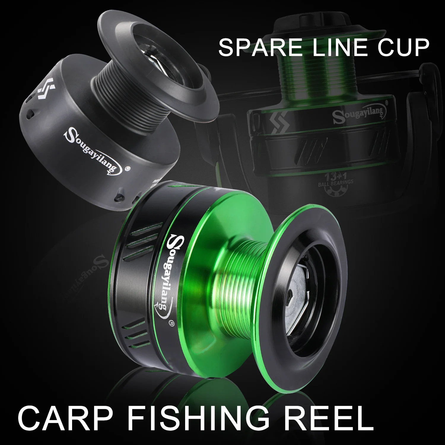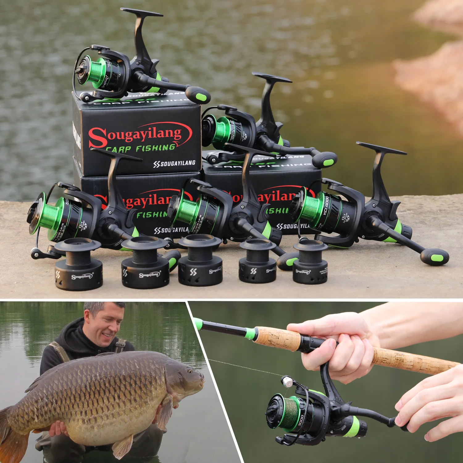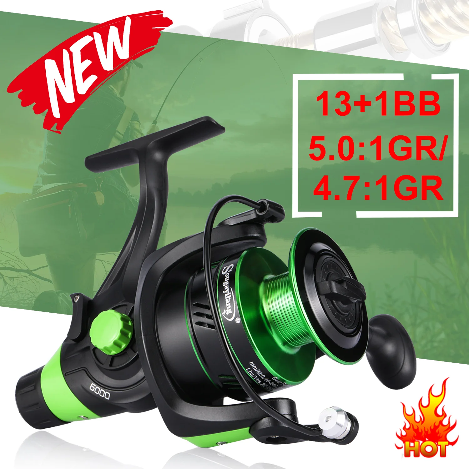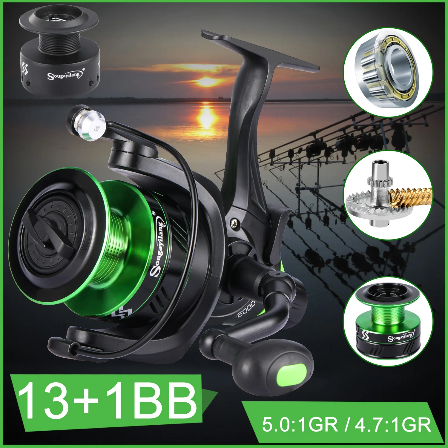 Sougayilang Carretes de Pesca de Carpas Serie 2000-6000 Full Metal 13 + 1BB Carrete Giratorio 10kg Arrastre Máximo para Aparejos de Pesca de Carpa