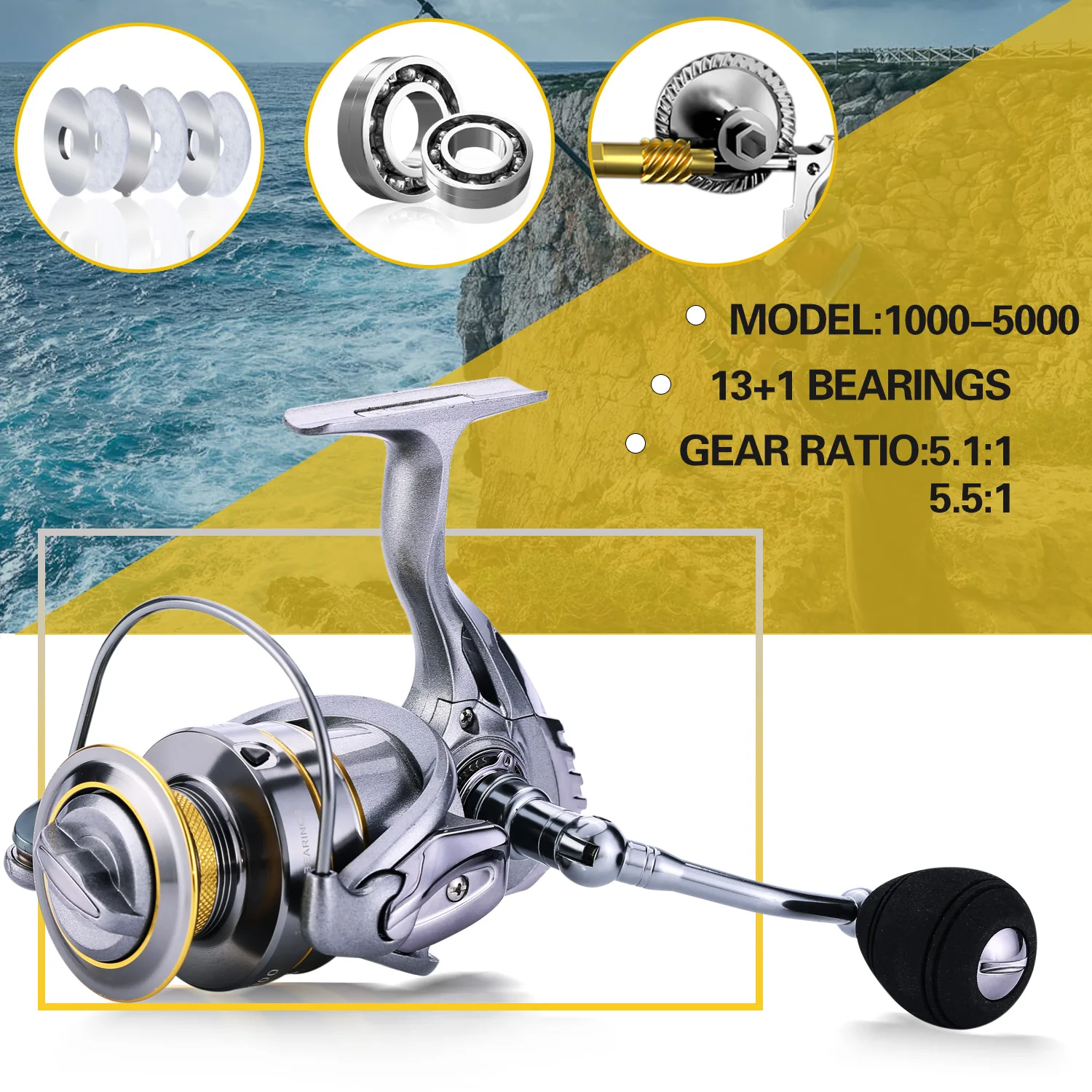 Sougayilang 13 + 1BB Spinning para Carretes de pesca 8KG Max Drag con tubo de carrete gratis para Spinning Pesca Accesorios de pesca