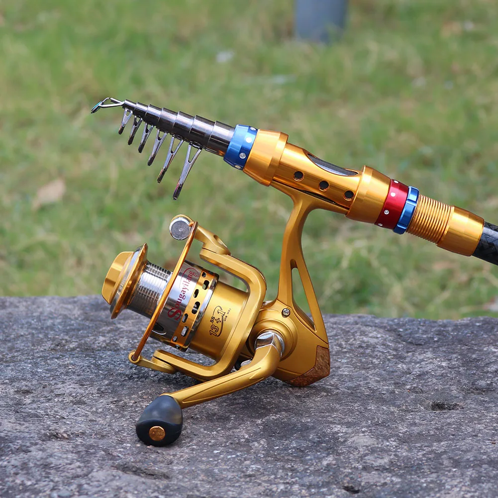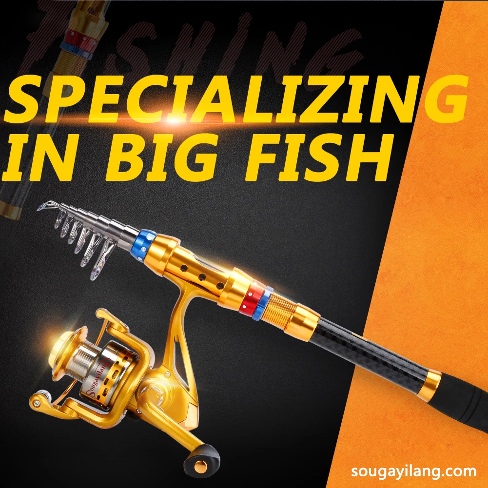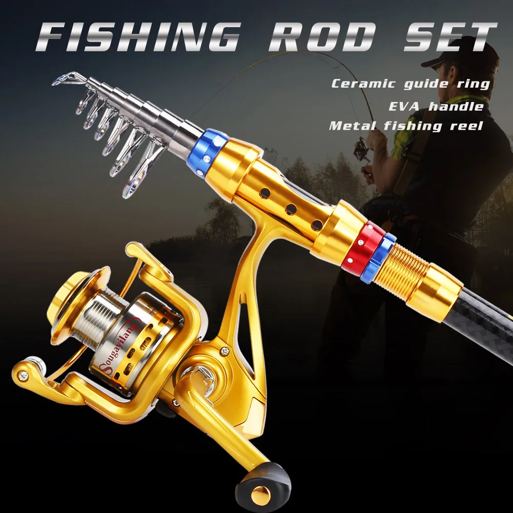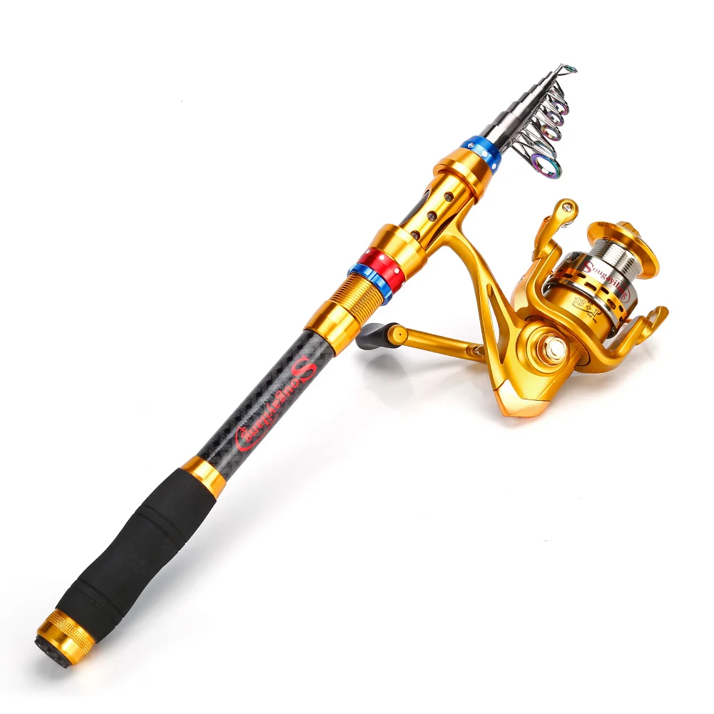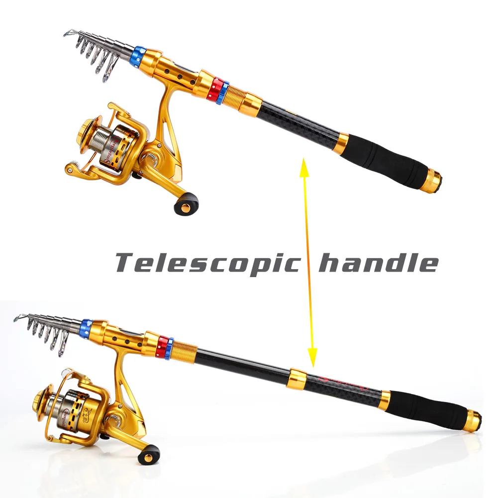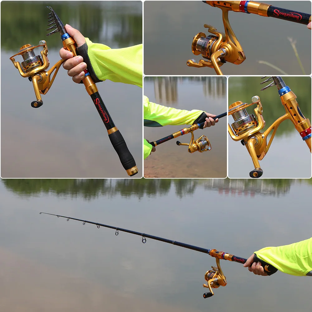 Combinación de caña de pescar telescópica Sougayilang de 1,8 - 3,6 M con carrete giratorio, ideal para viajes y pesca en agua dulce y salada