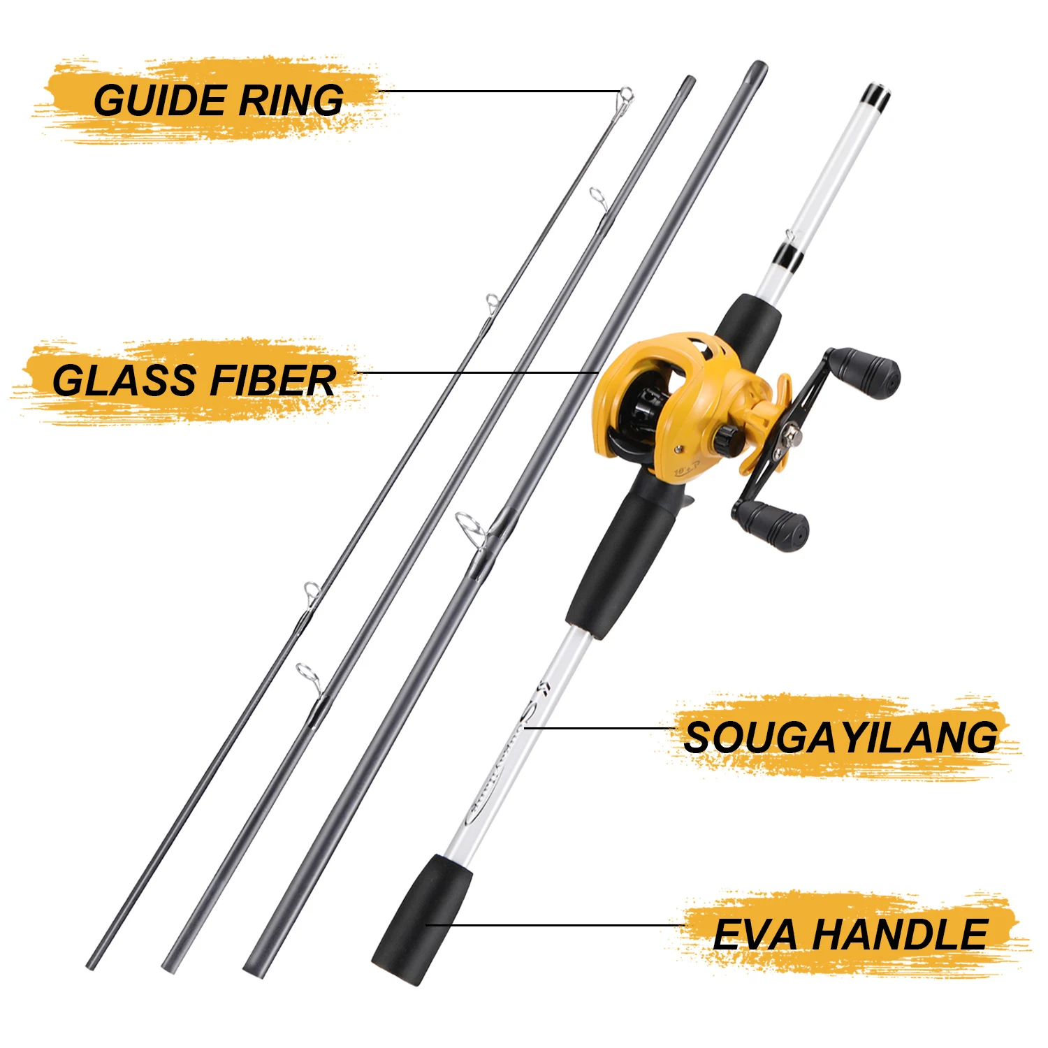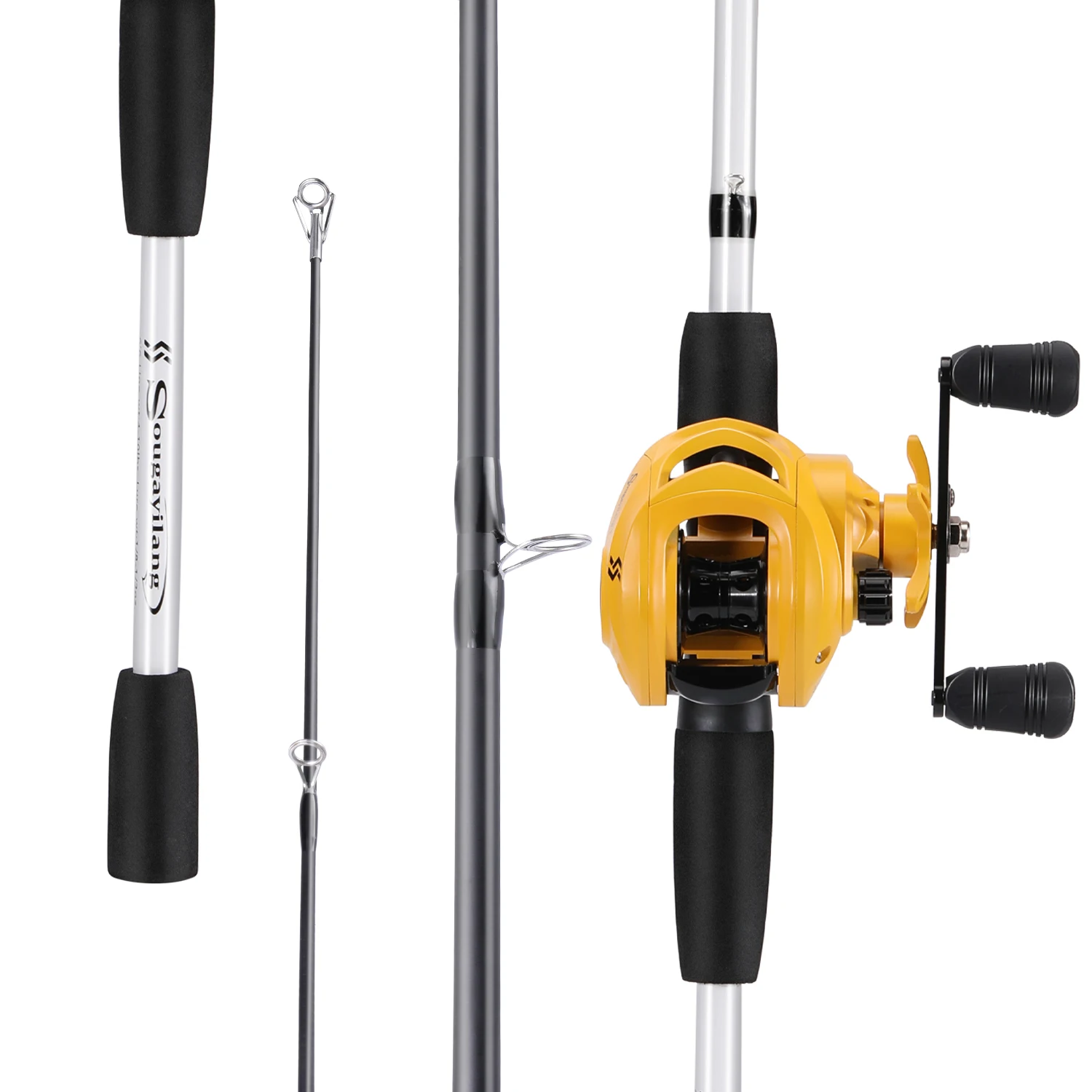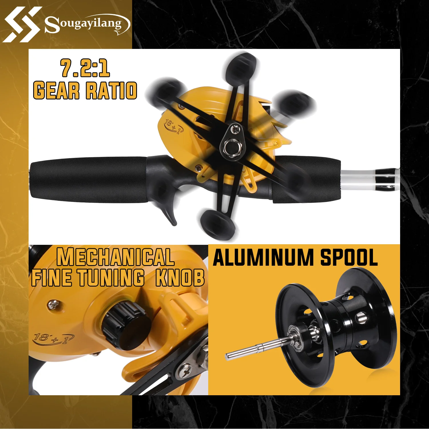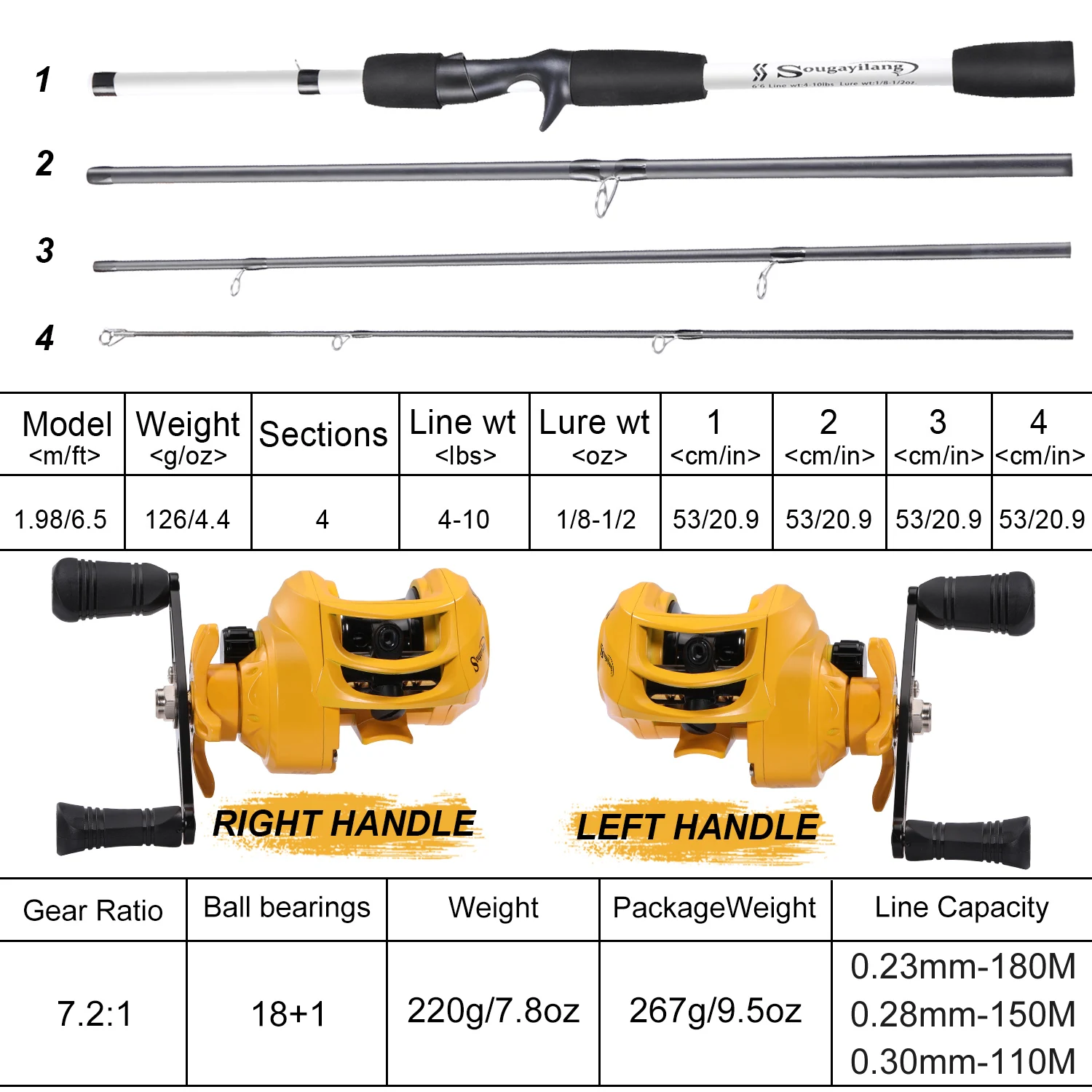 Combo de pesca de fundición Sougayilang, 1,98 m, 4 secciones, varilla de fibra de carbono ultraligera y 7,2: 1, relación de engranaje, carrete de pesca, Kit de pesca