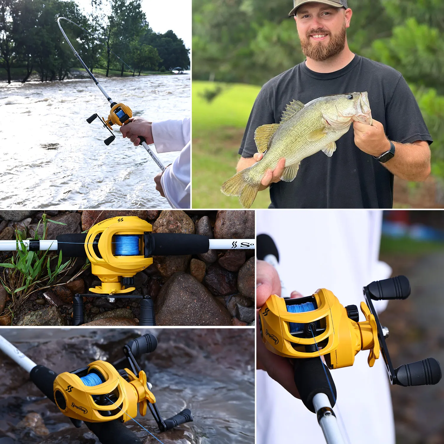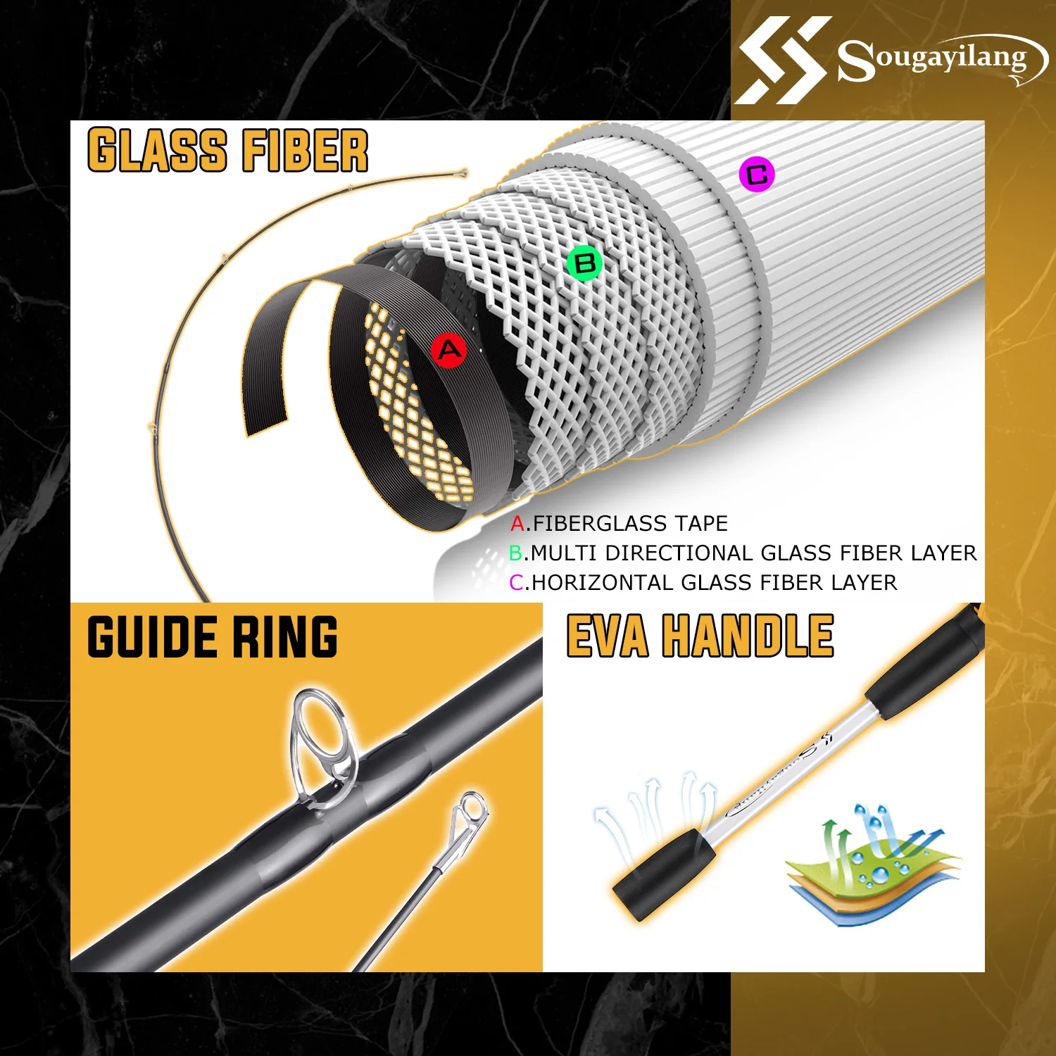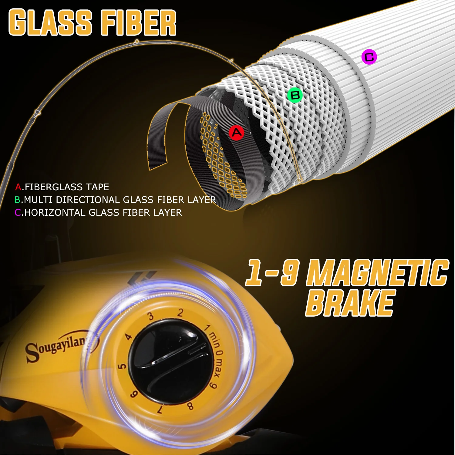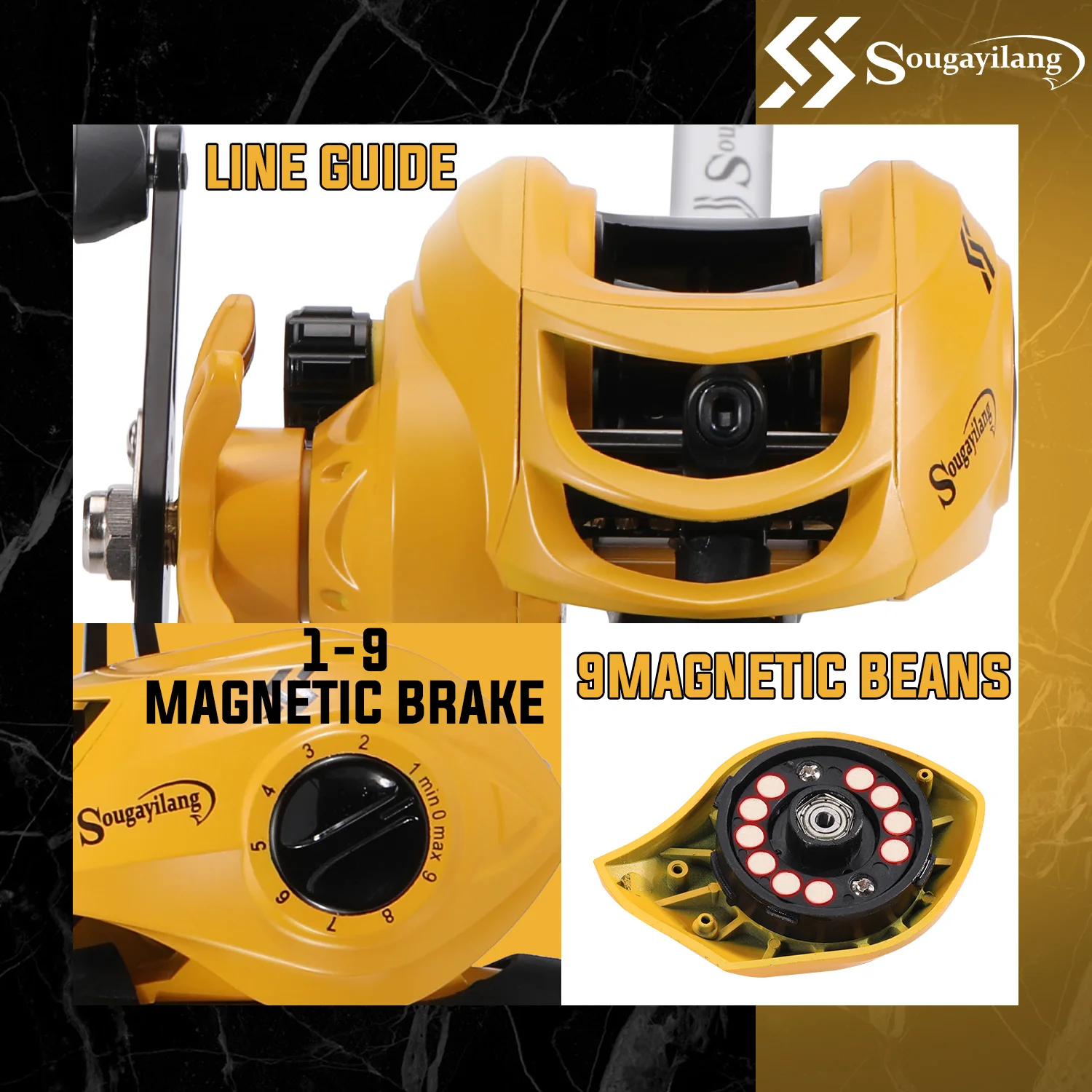Combo de pesca de fundición Sougayilang, 1,98 m, 4 secciones, varilla de fibra de carbono ultraligera y 7,2: 1, relación de engranaje, carrete de pesca, Kit de pesca