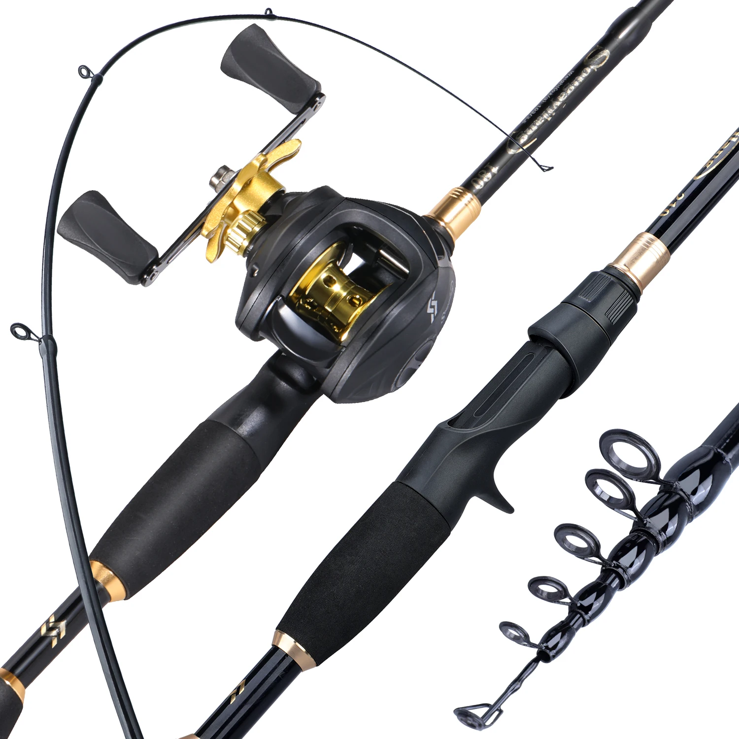 Combo de pesca de fundición telescópica Sougayilang1.8-2,4 m, caña ultraligera portátil y relación de engranaje 7,2: 1, conjunto combinado de pesca, detalles sobre la caña:
