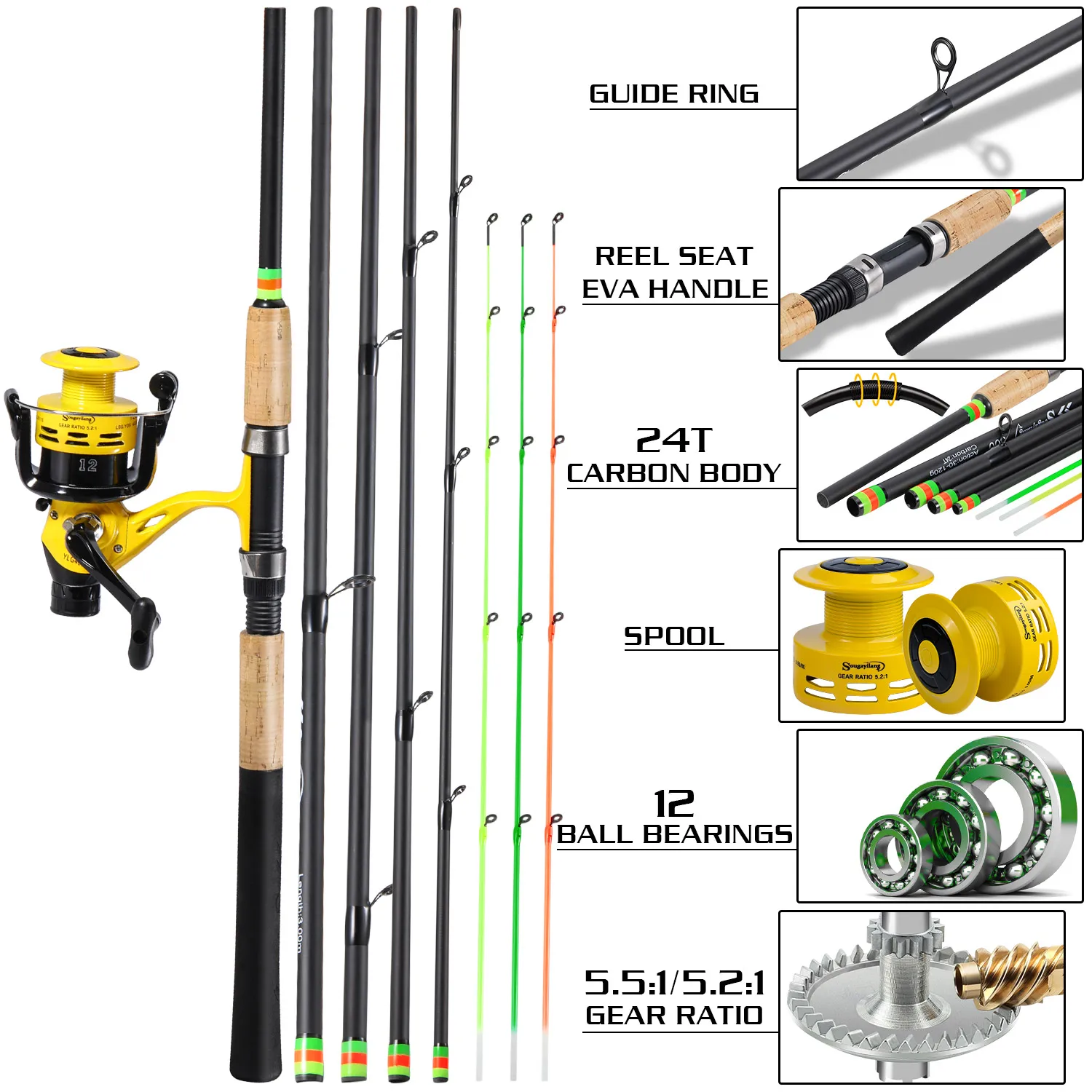 Sougayilang-combo de pesca giratoria de 3,0 m, 6 secciones, L M H, caña de viaje eléctrica y 5,5:1/5,2:1, Kit de pesca de carrete de pesca con relación de engranaje