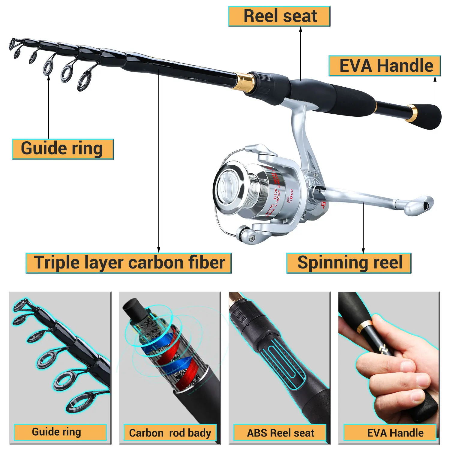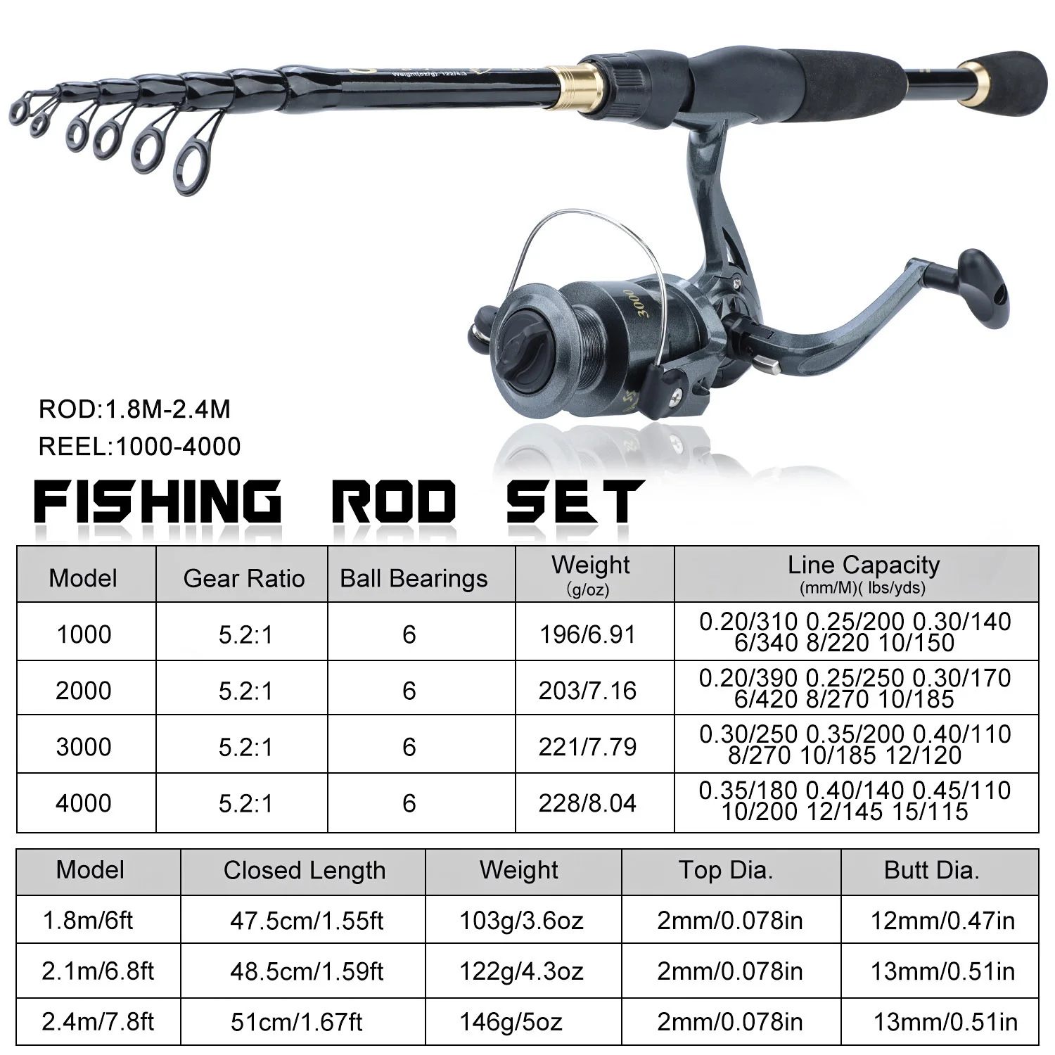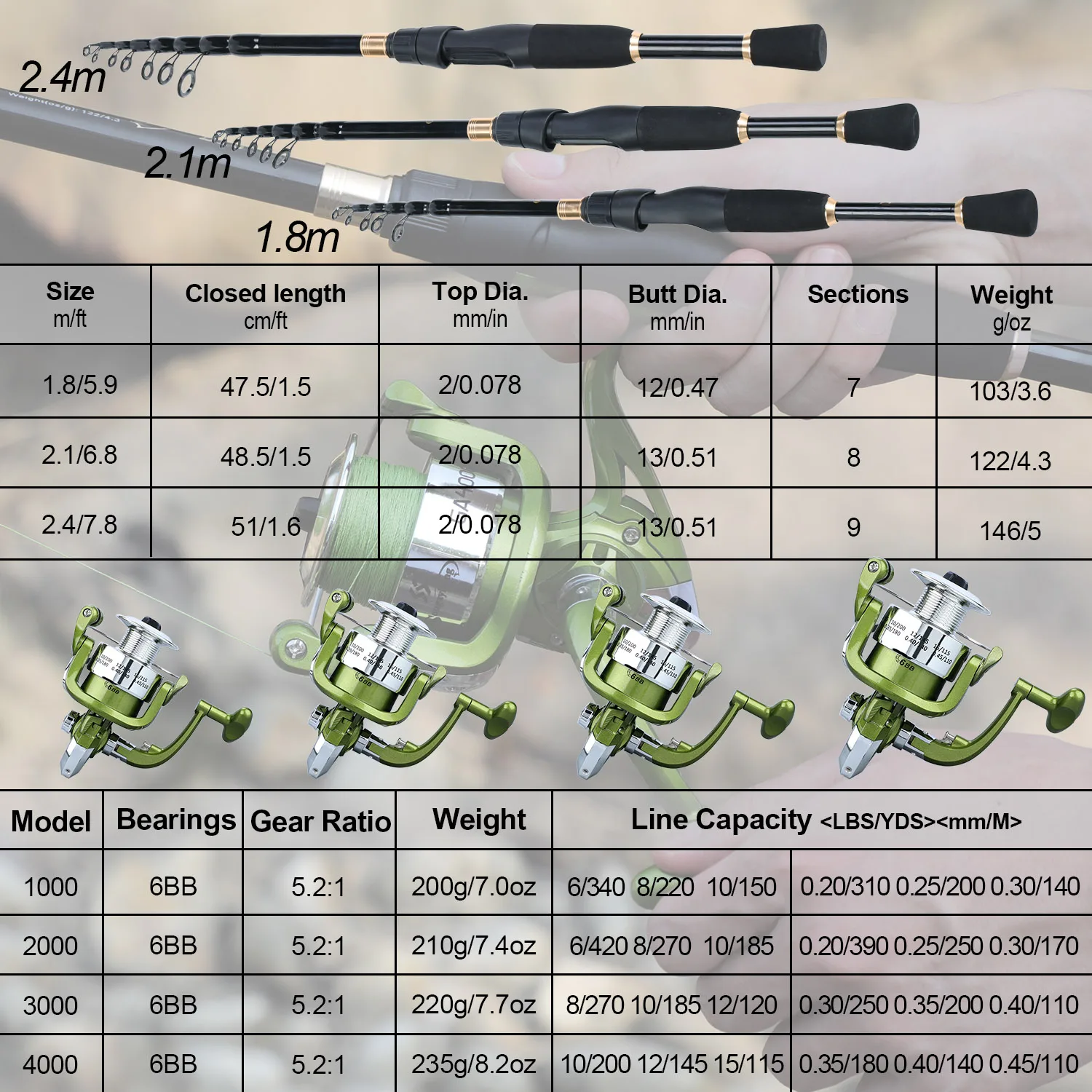 1 * caña de pescar + 1 * carrete de pesca + 1 * accesorios de pesca + 1 * línea de pesca de 100M