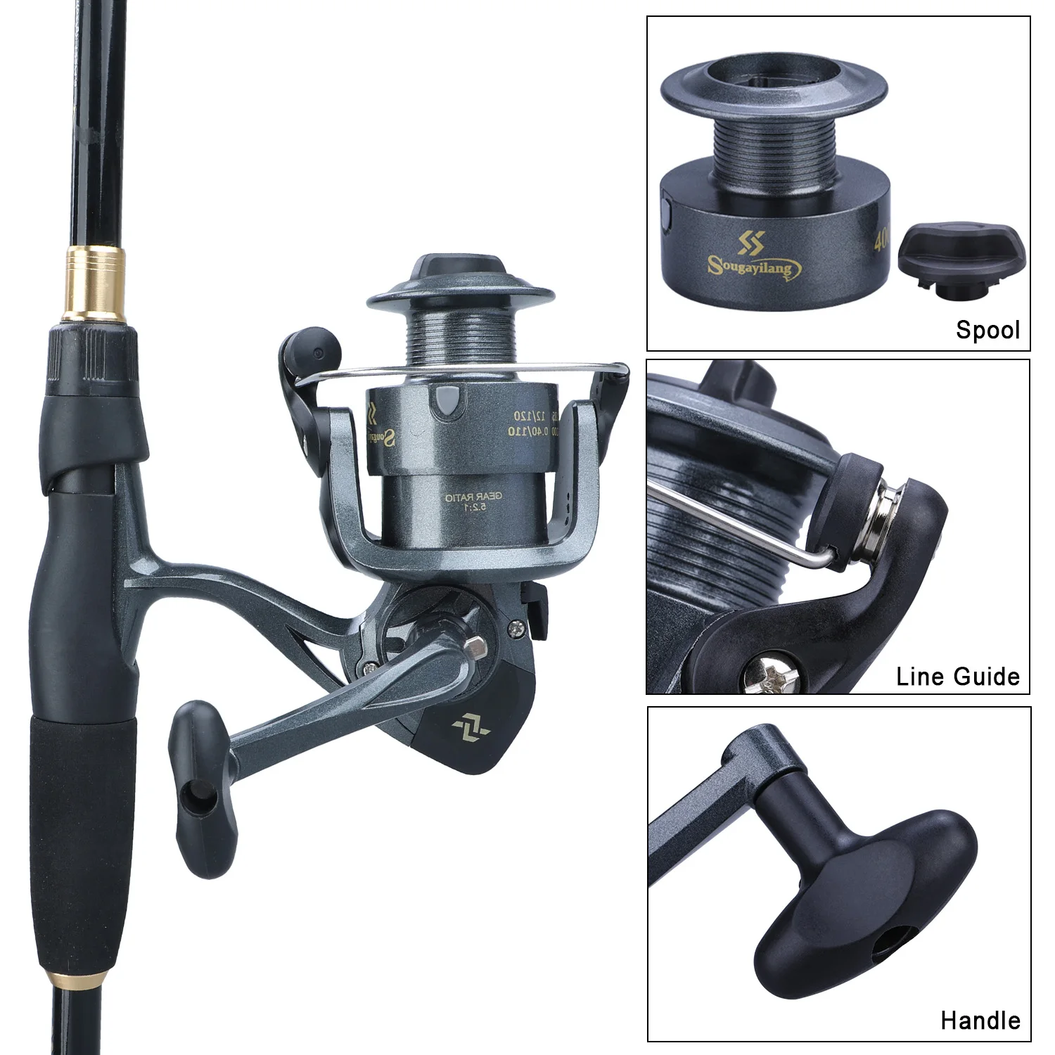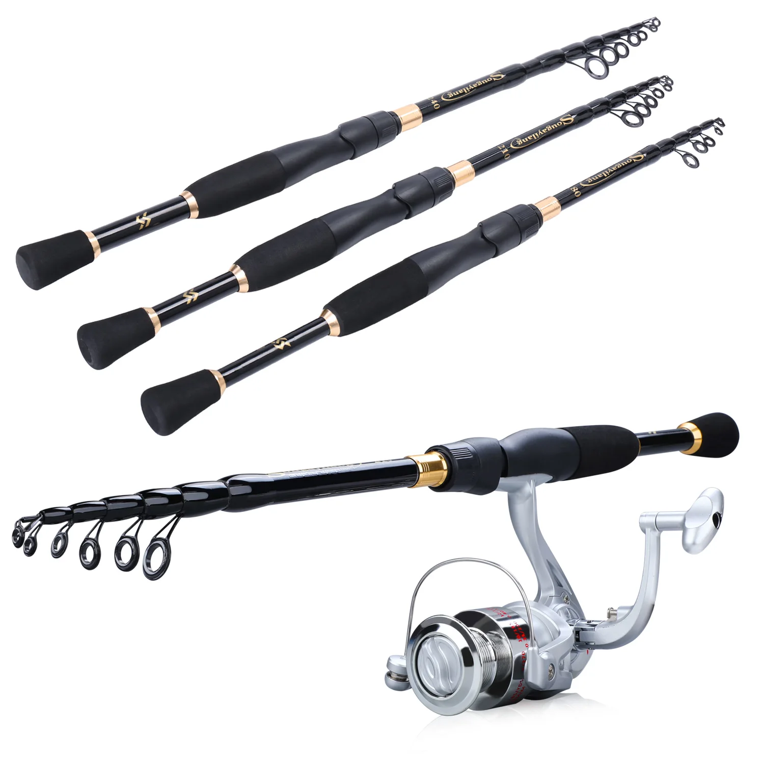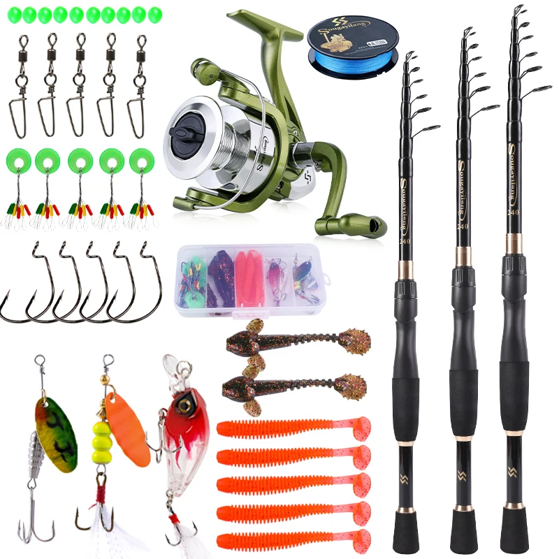 Combo de pesca telescópica Sougayilang, varilla de fibra de carbono de 1,8-2,4 m, 1000-4000, carrete giratorio, Juego de pesca con accesorios de línea de pesca
