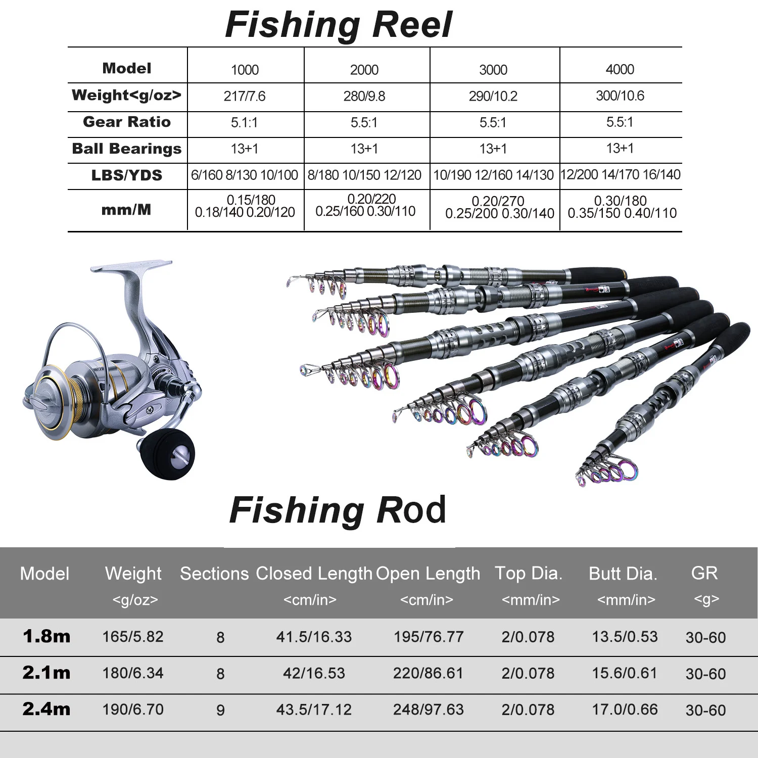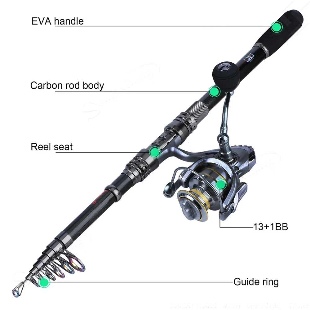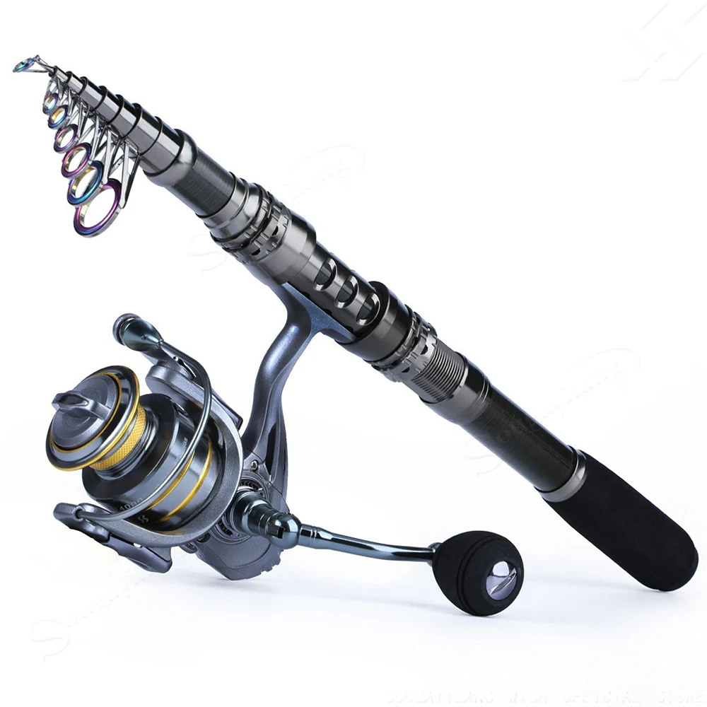 Combos de caña de pescar Sougayilang 1,8-2.4 caña de pescar telescópica, carretes giratorios, bolsa portadora de pesca, juegos de líneas de señuelos para pesca de viaje