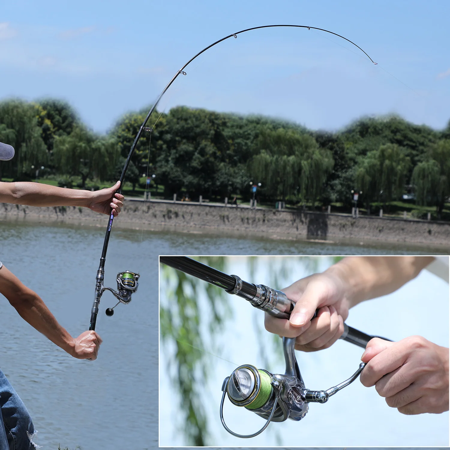 1. La fibra de carbono de alta densidad mezclada con fibra de vidrio hace que la caña de pescar sea dura y duradera.
