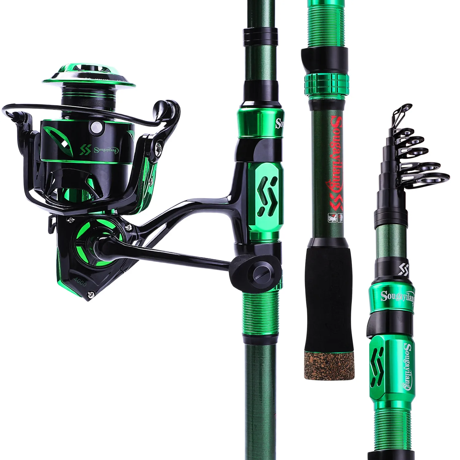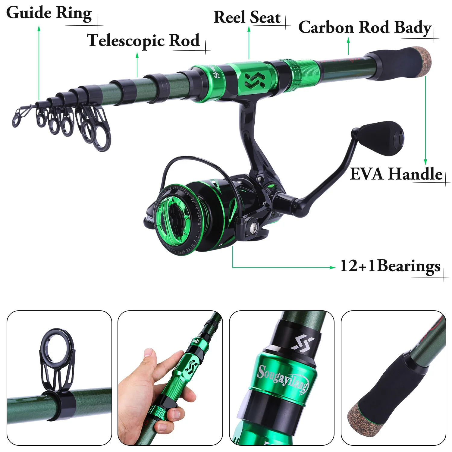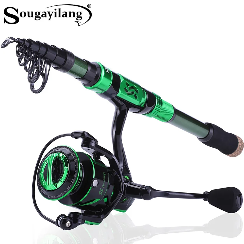 Sougayilang, combo de carrete de caña de pescar, carrete giratorio telescópico de fibra de carbono de 24 toneladas para pesca en agua dulce y salada