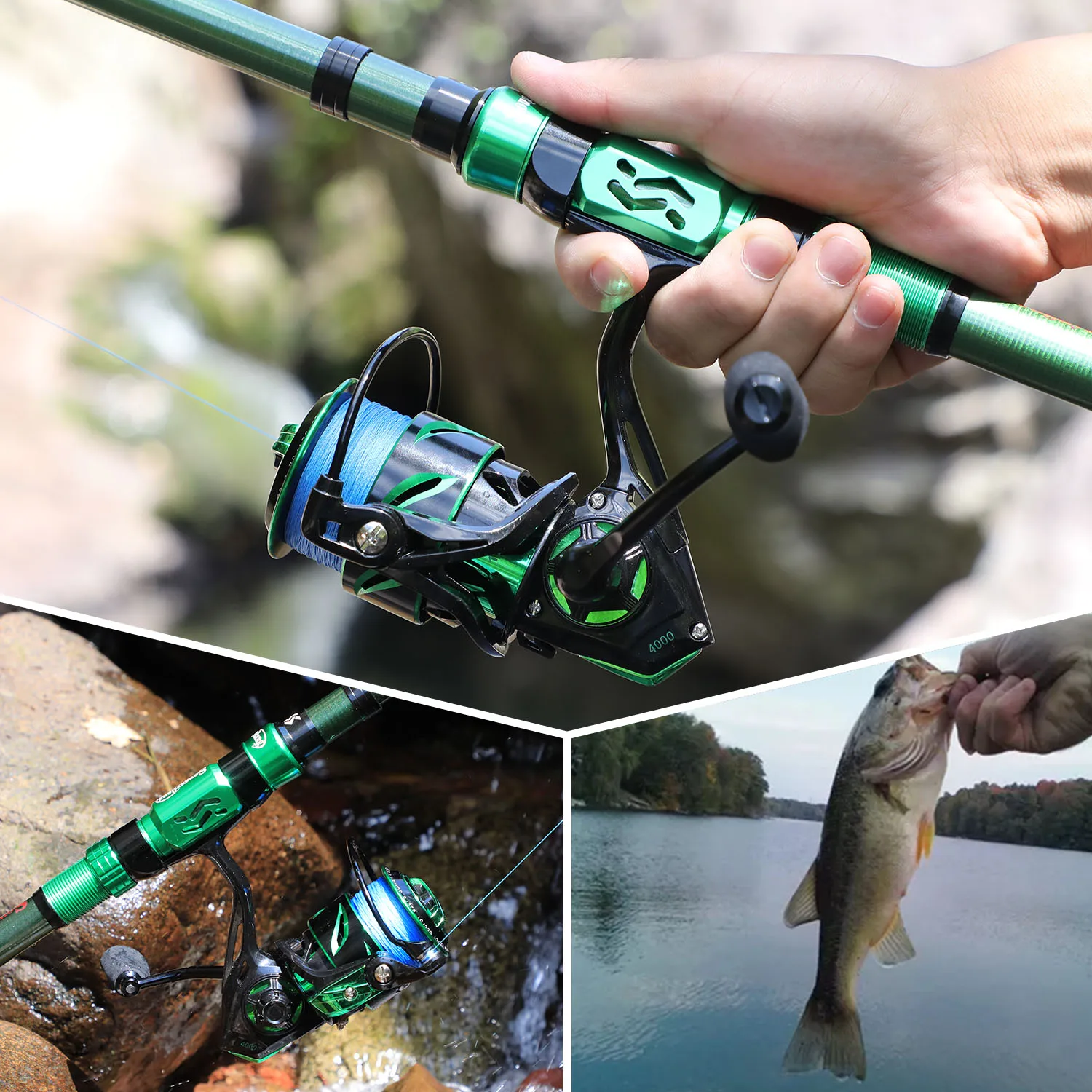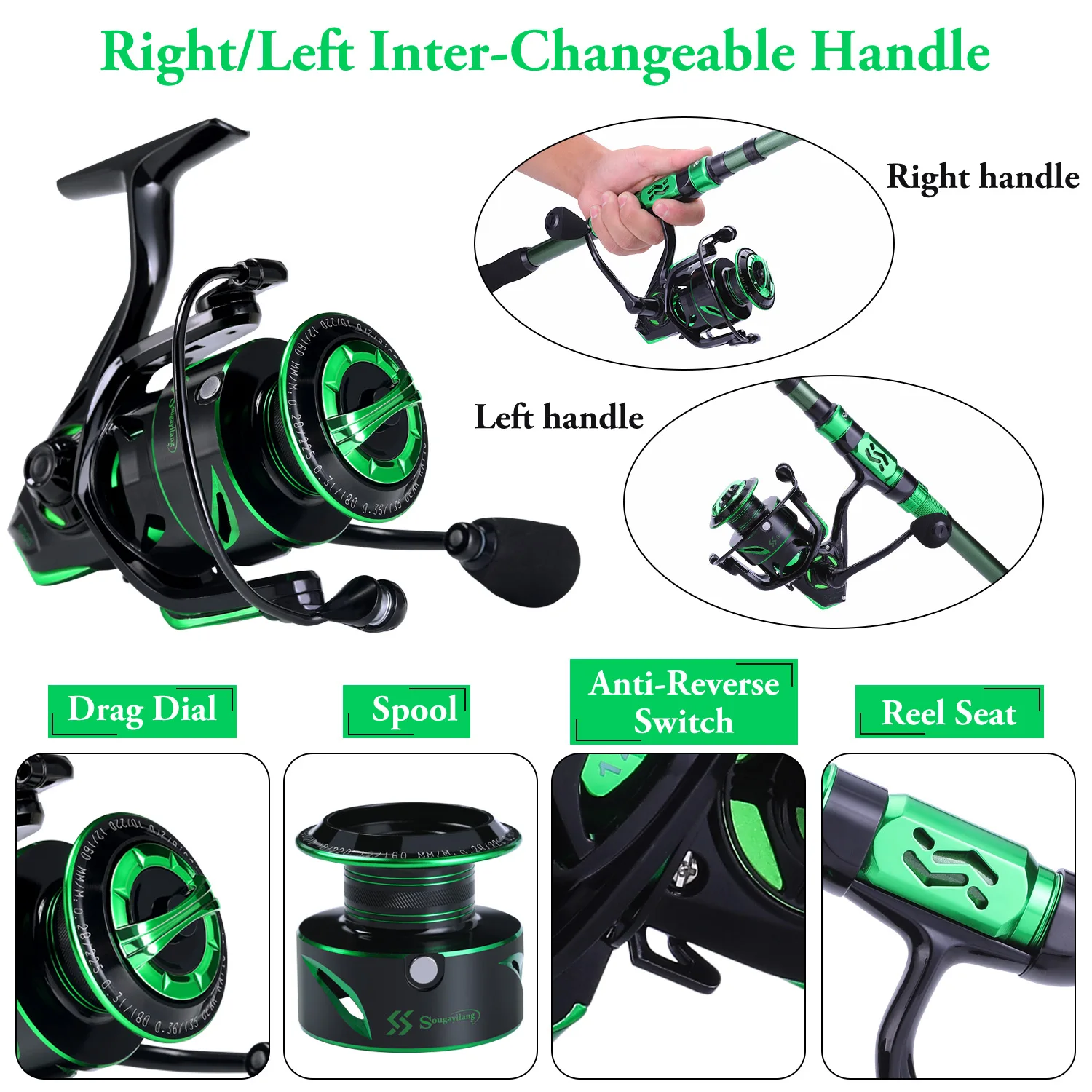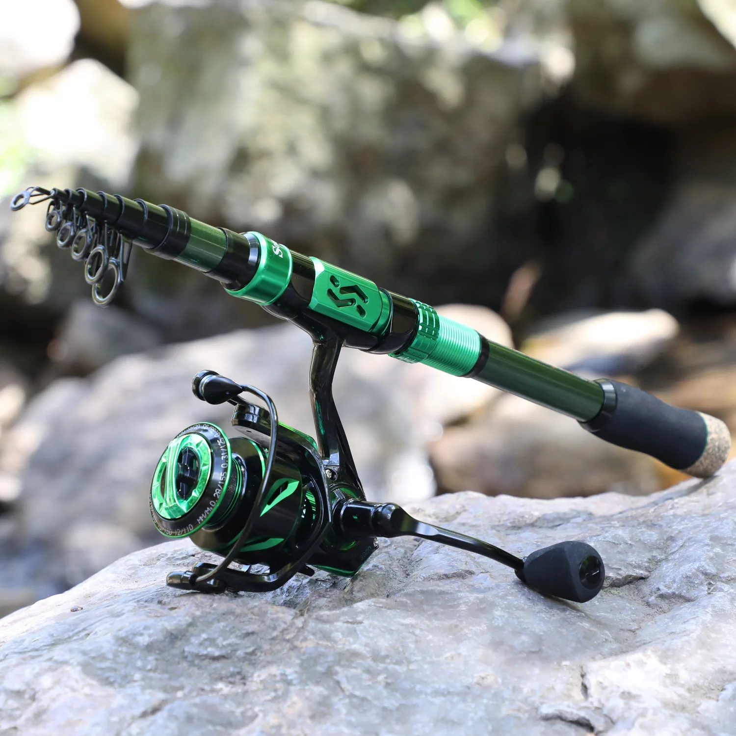 Sougayilang, combo de carrete de caña de pescar, carrete giratorio telescópico de fibra de carbono de 24 toneladas para pesca en agua dulce y salada
