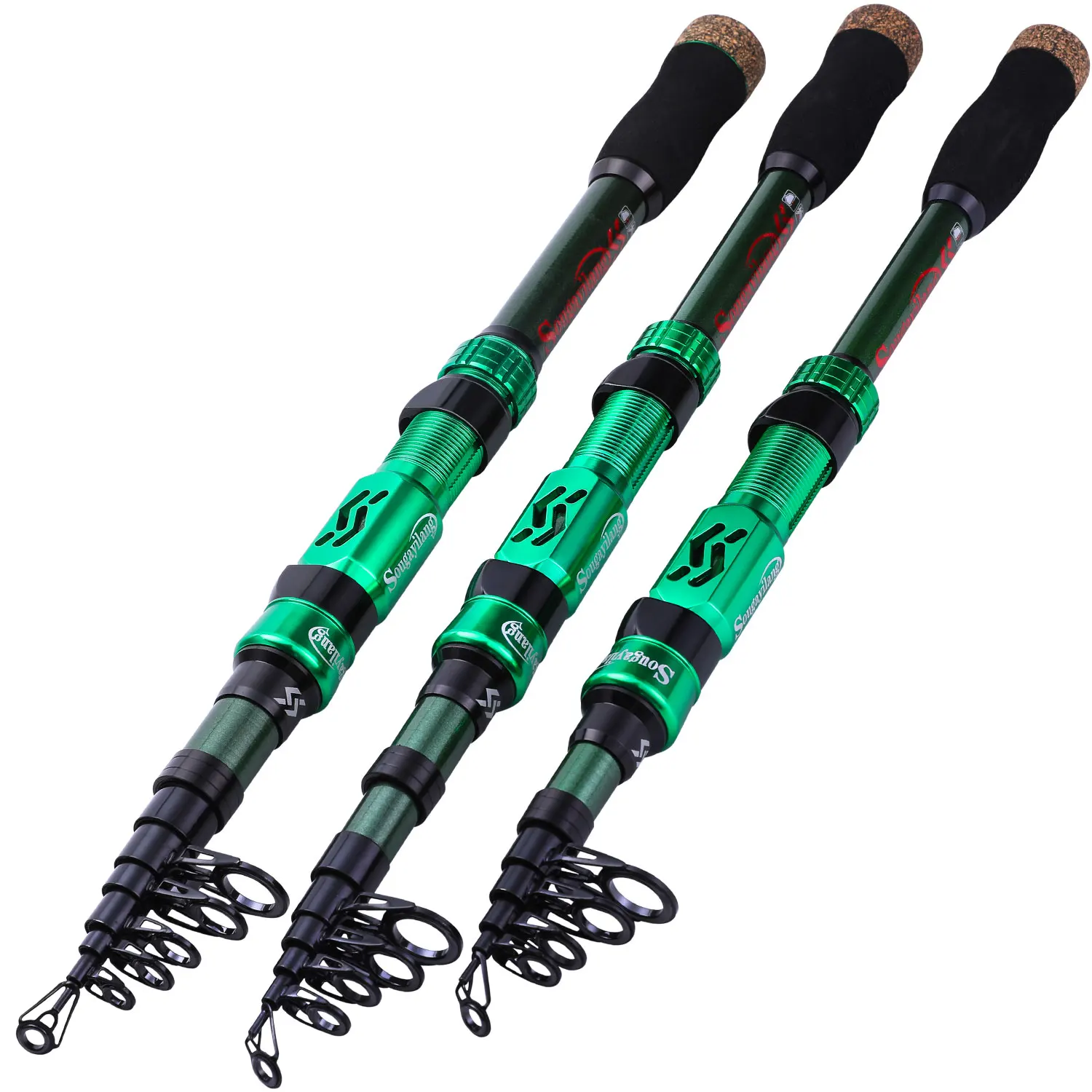 1. La caña de pescar telescópica Sougayilang está construida con fibra de carbono de 24 toneladas de alta densidad reforzada con compuesto de fibra de vidrio para mayor potencia y elasticidad;