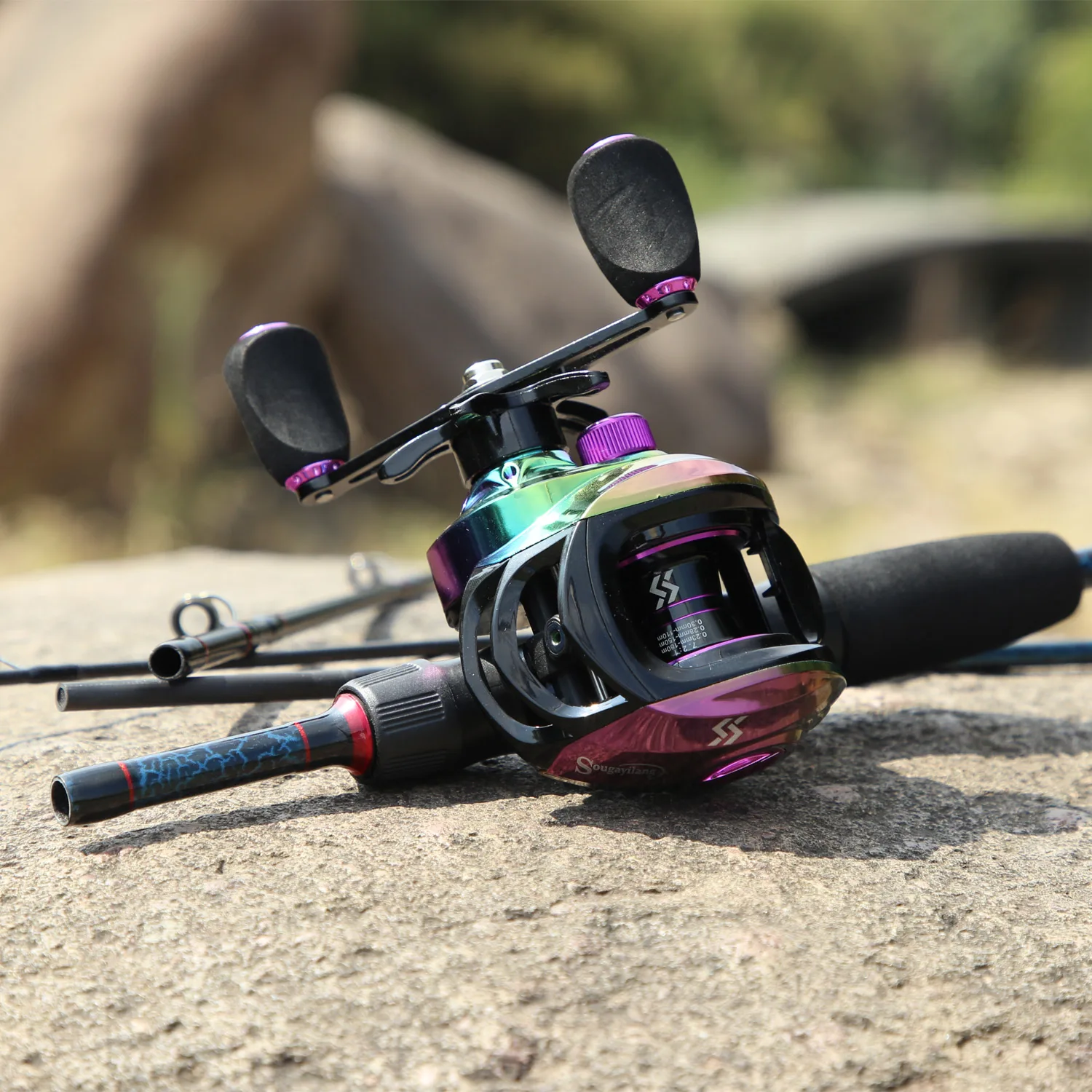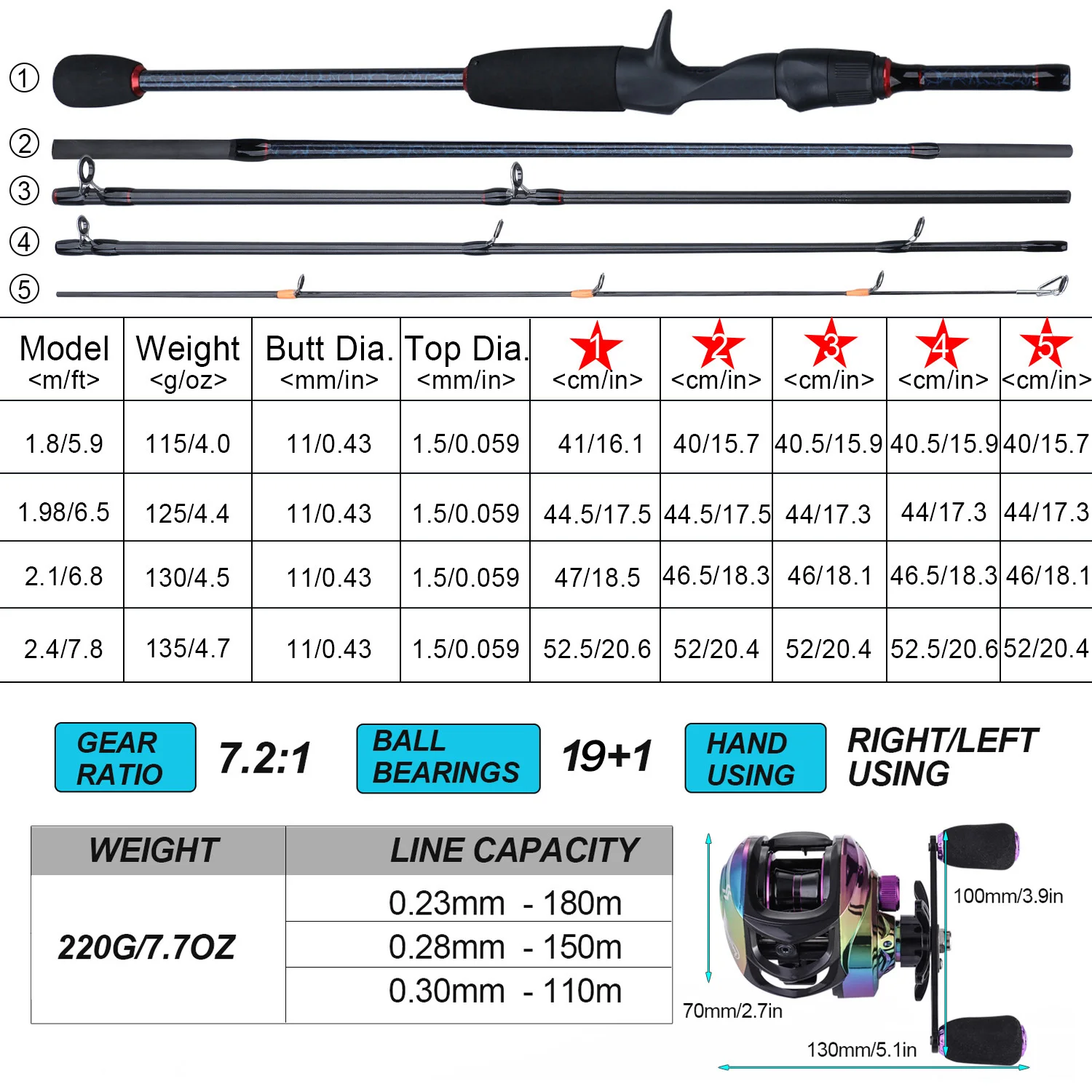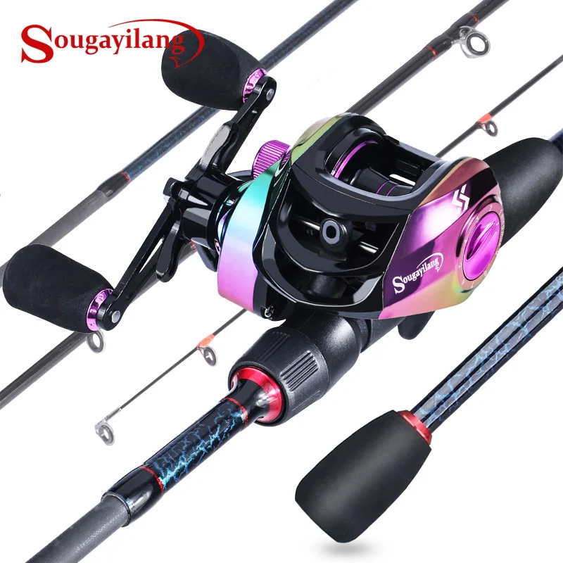 Sougayilang 1,8 M-2,4 M Casting Fishing Combo Set 5 Secciones UL Rod y 7,0: 1 Carrete Baitcasting de alta velocidad Accesorios de pesca