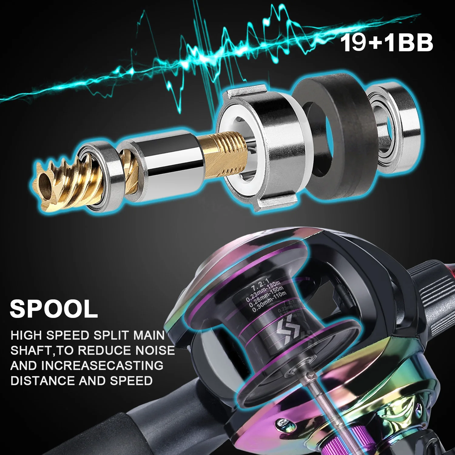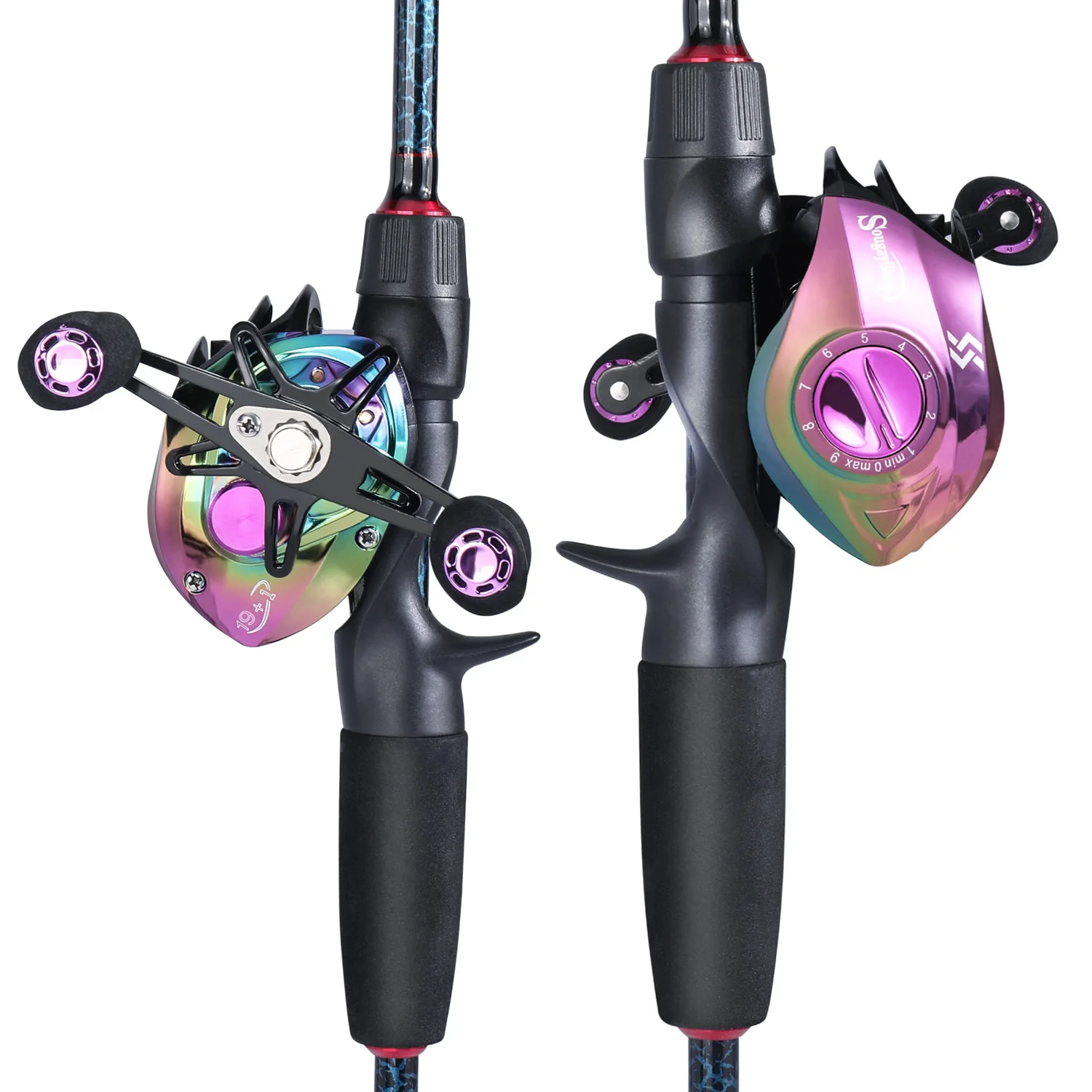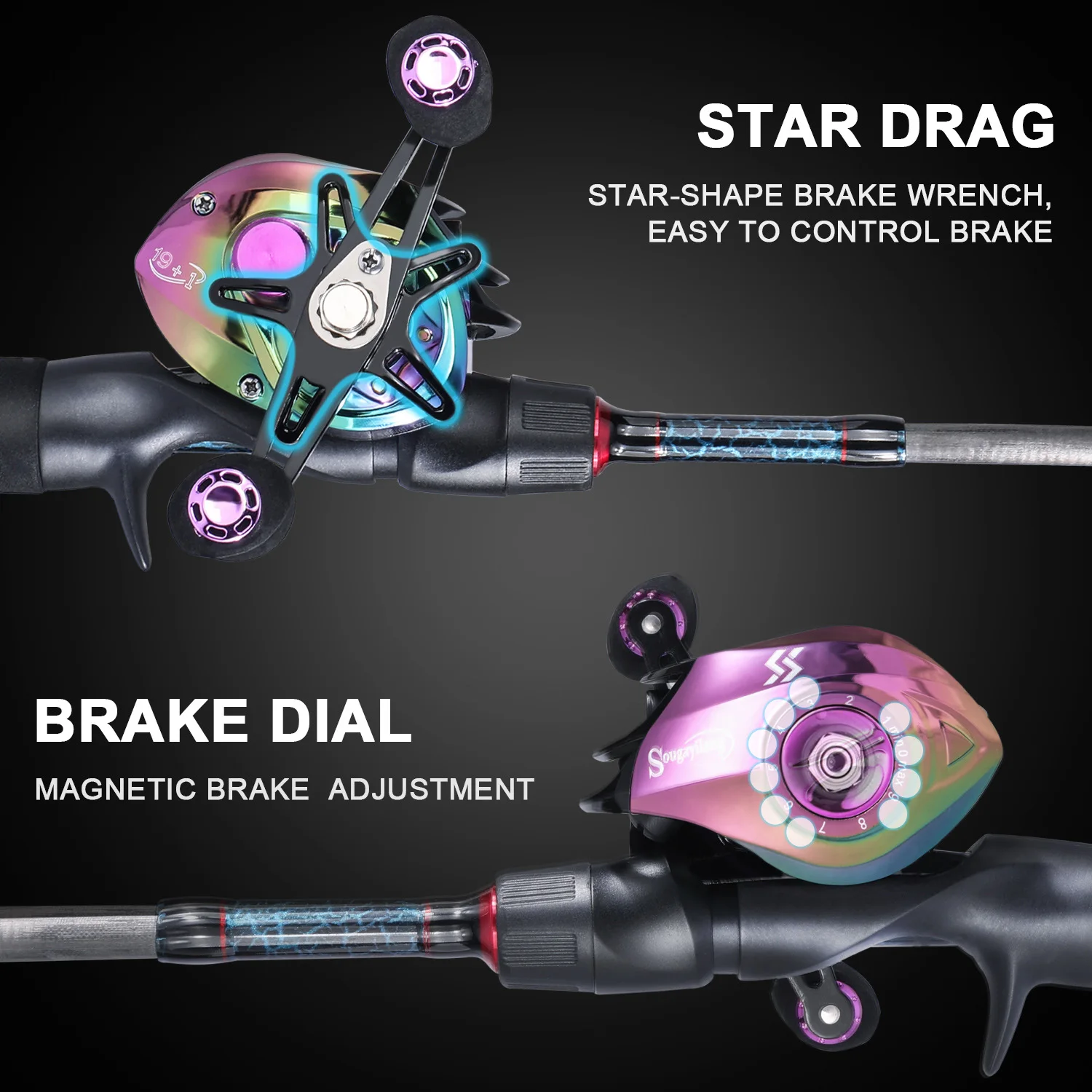 Sougayilang 1,8 M-2,4 M Casting Fishing Combo Set 5 Secciones UL Rod y 7,0: 1 Carrete Baitcasting de alta velocidad Accesorios de pesca