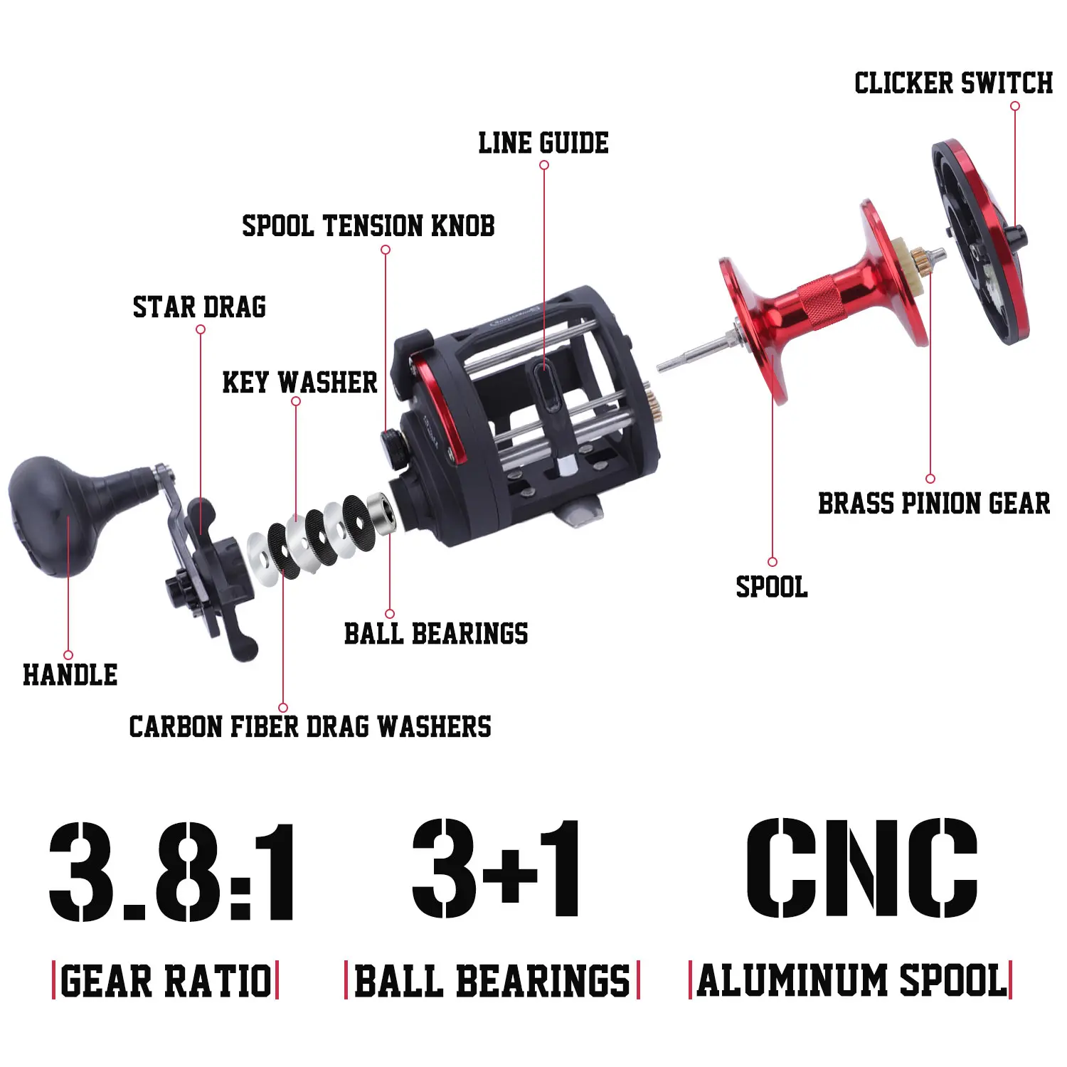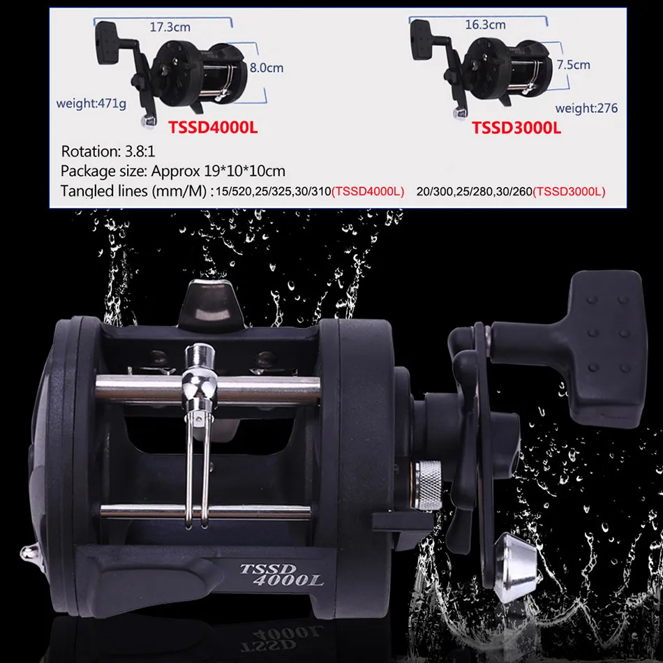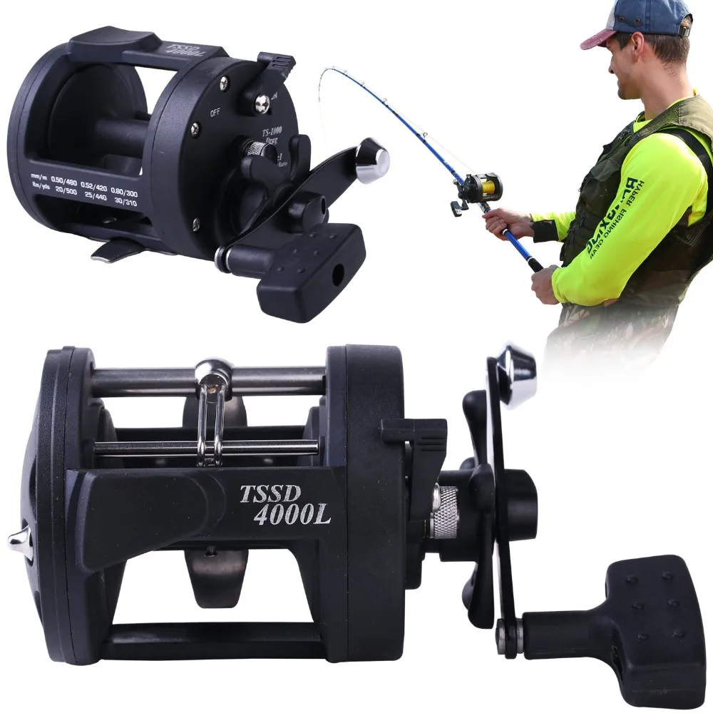 Sougayilang DTR-30 DTR-40 Carretes de pesca con tambor de pesca con curricán 3 + 1BB Mano izquierda/derecha Carro de pesca con tambor de curricán de agua salada Transmisión máxima 25 kg Pesca