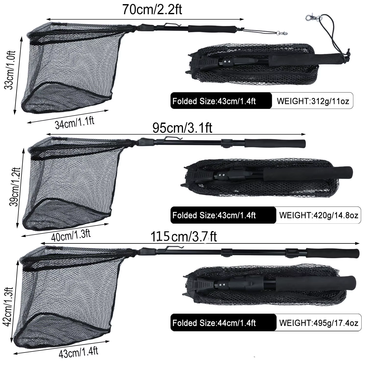 Sougayilang herramienta de pesca red aparejos de pesca 70cm 95cm 115cm red de pesca plegable retráctil portátil para pesca de trucha de carpa lubina