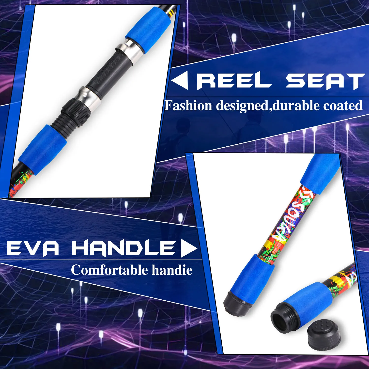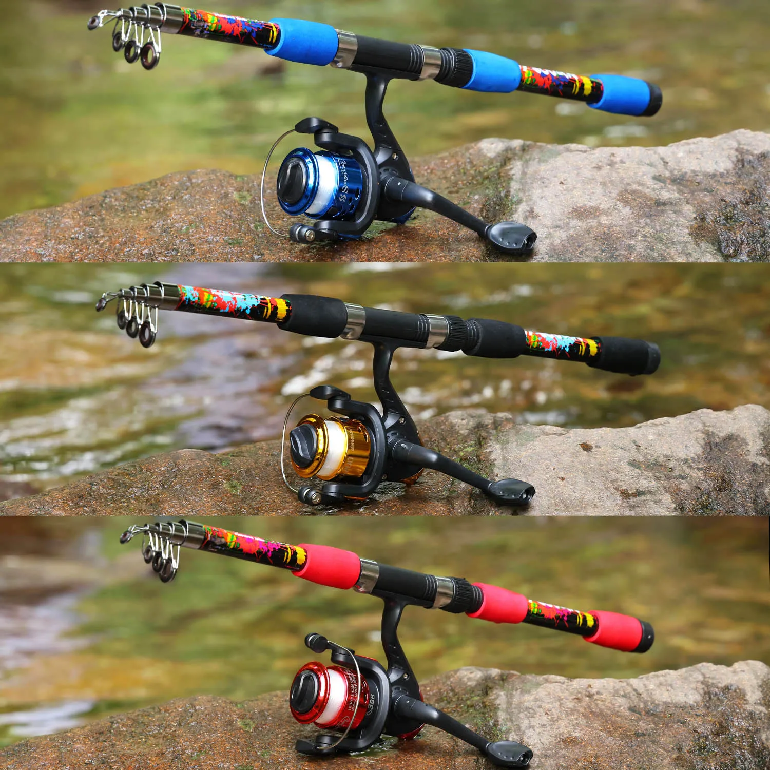 Diseñado para viajar, este juego de pesca es compacto y fácil de transportar, lo que lo hace perfecto para aventuras de pesca en lagos.