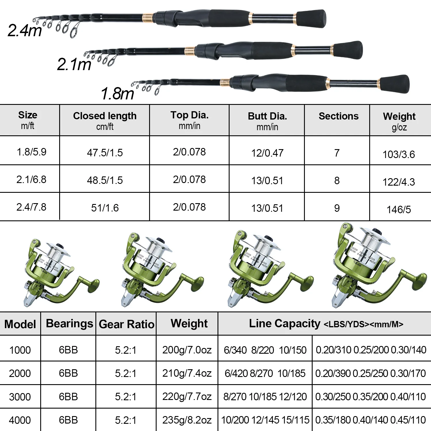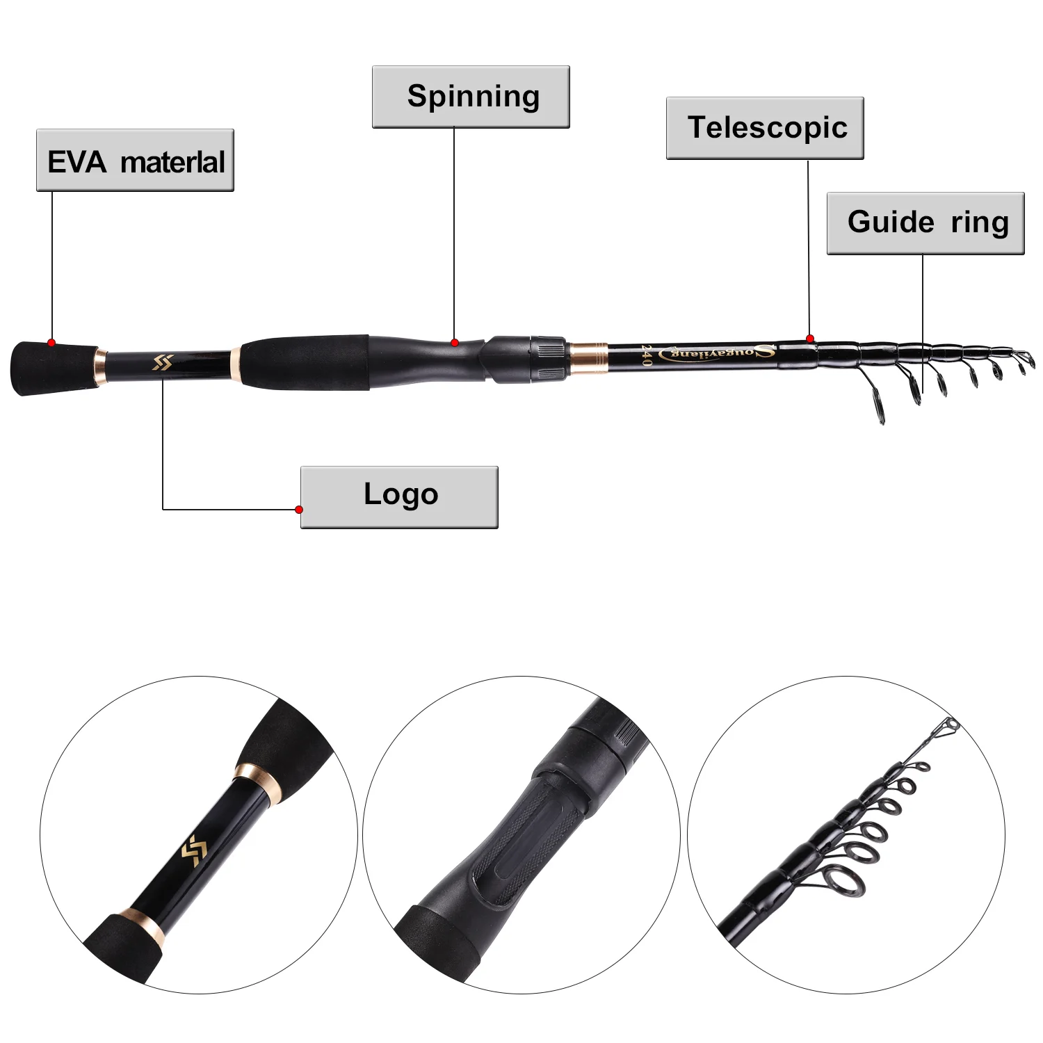 Sougayilang 1,8-2,4 m Juego de cañas de pescar telescópicas Caña de pescar ultraligera Carrete giratorio con línea Señuelo Gancho Accesorios Kits completos