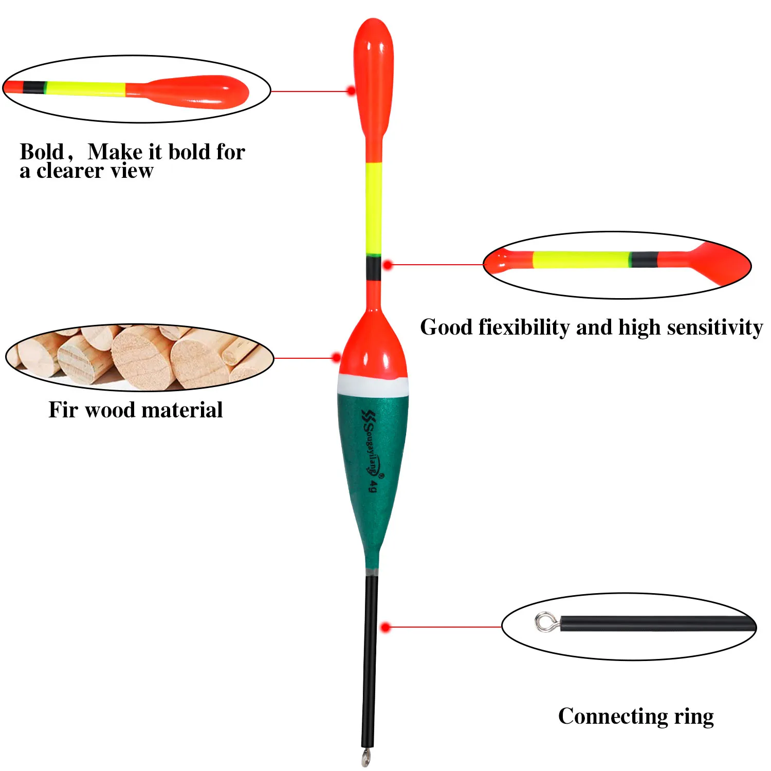 Longitud: 20cm/7,8 pulgadasColor: Como se muestra en las imágenes.Material: EspumaCaracterísticas: Gran flotabilidadTipo de accesorios: FlotadorTamaño: 2G, 3G, 4G, 5G, 6g