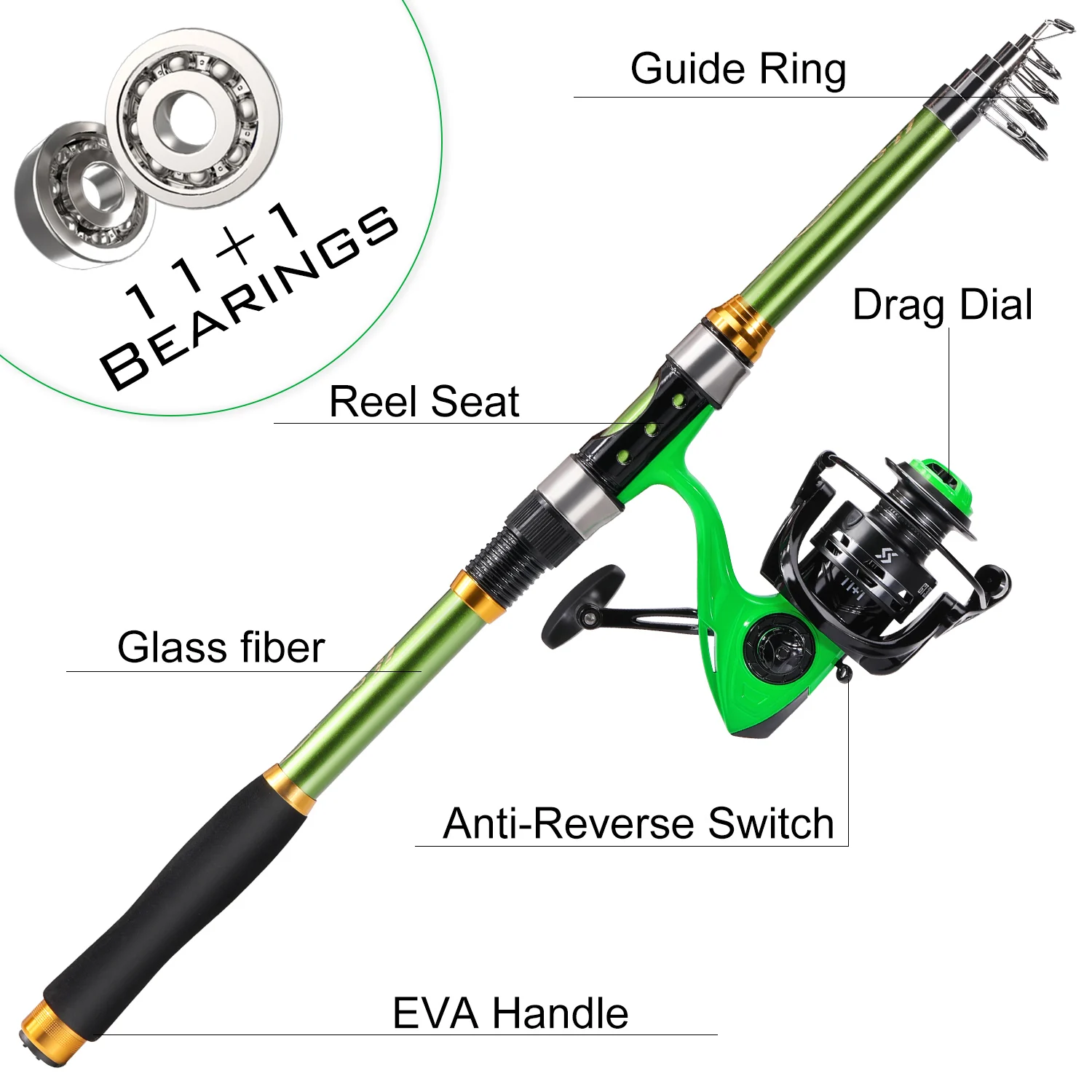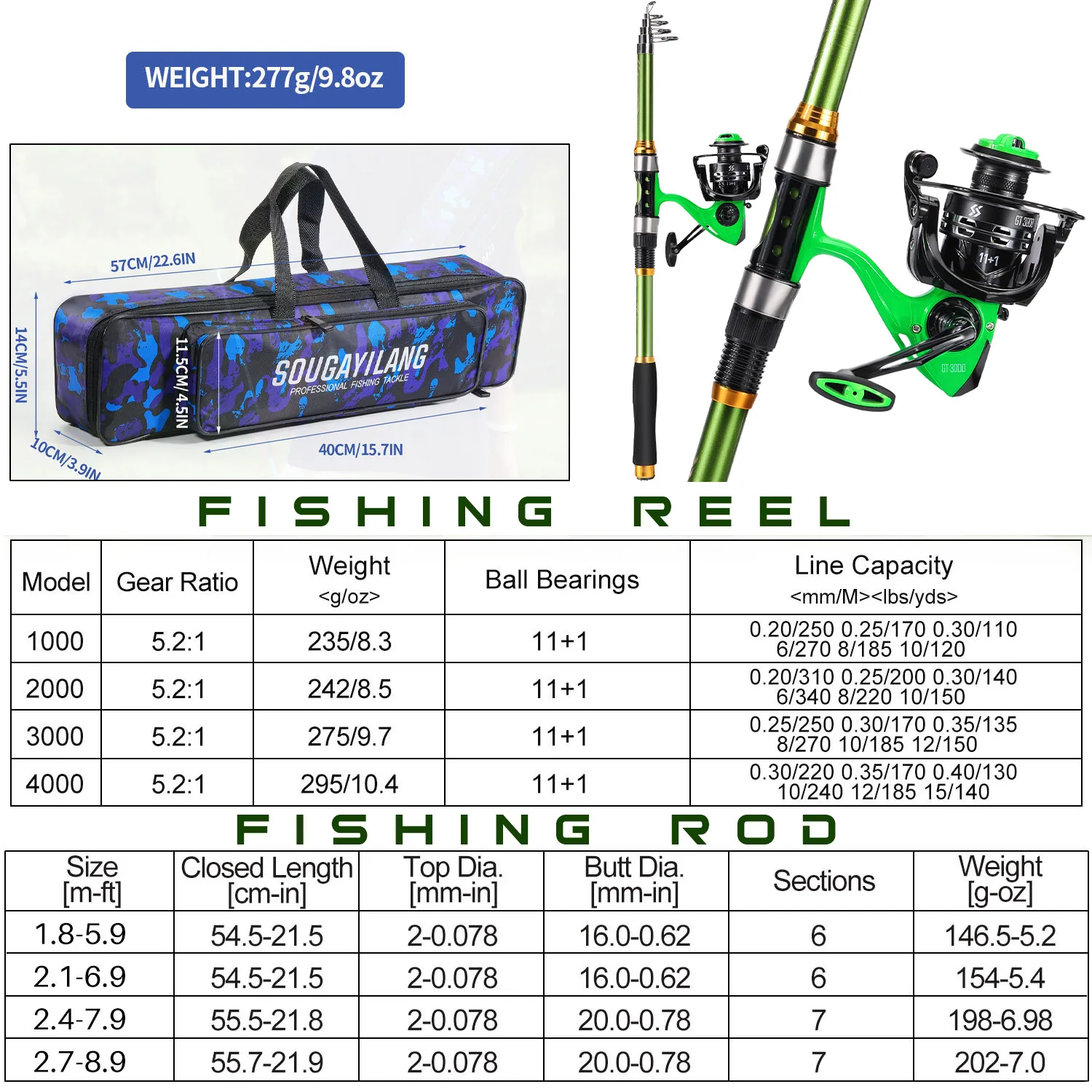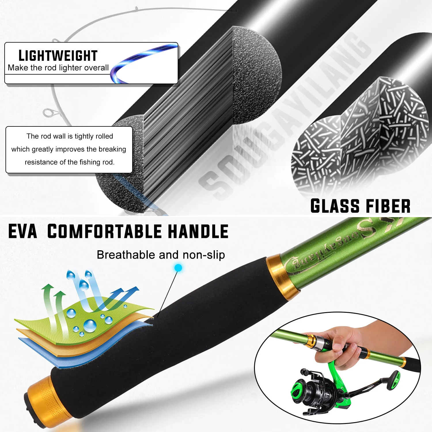 Juego de pesca Sougayilang Kits completos con caña de pescar telescópica y carrete giratorio, anzuelo de cebo, juego de caña de viaje con línea de pesca de 500m
