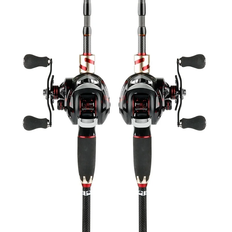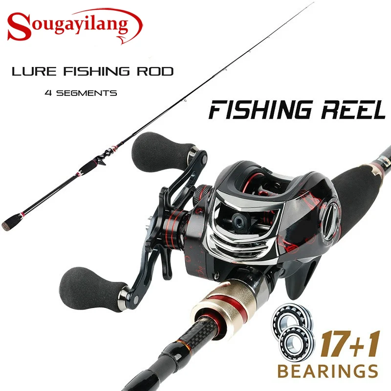 Juego de pesca de fundición Sougayilang, caña de pescar de fibra de carbono de 4 secciones y carrete de pesca de fundición 17 + 1BB para pesca de viaje al aire libre