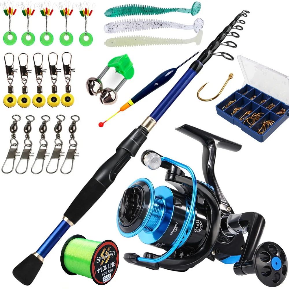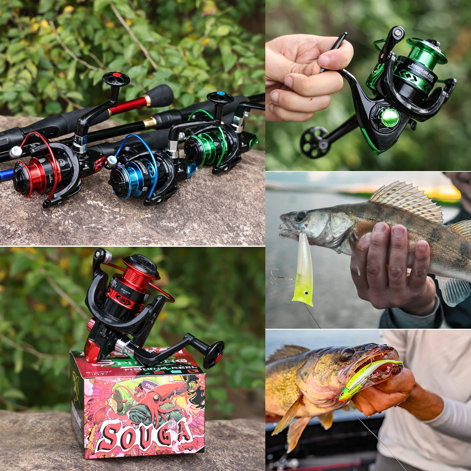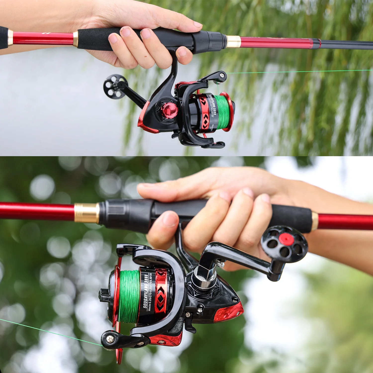 Juego de pesca giratoria Sougayilang 1,8-2,4 m caña de fibra de carbono 1000-4000 5,2: 1 carrete giratorio con línea de pesca de 500m y accesorios