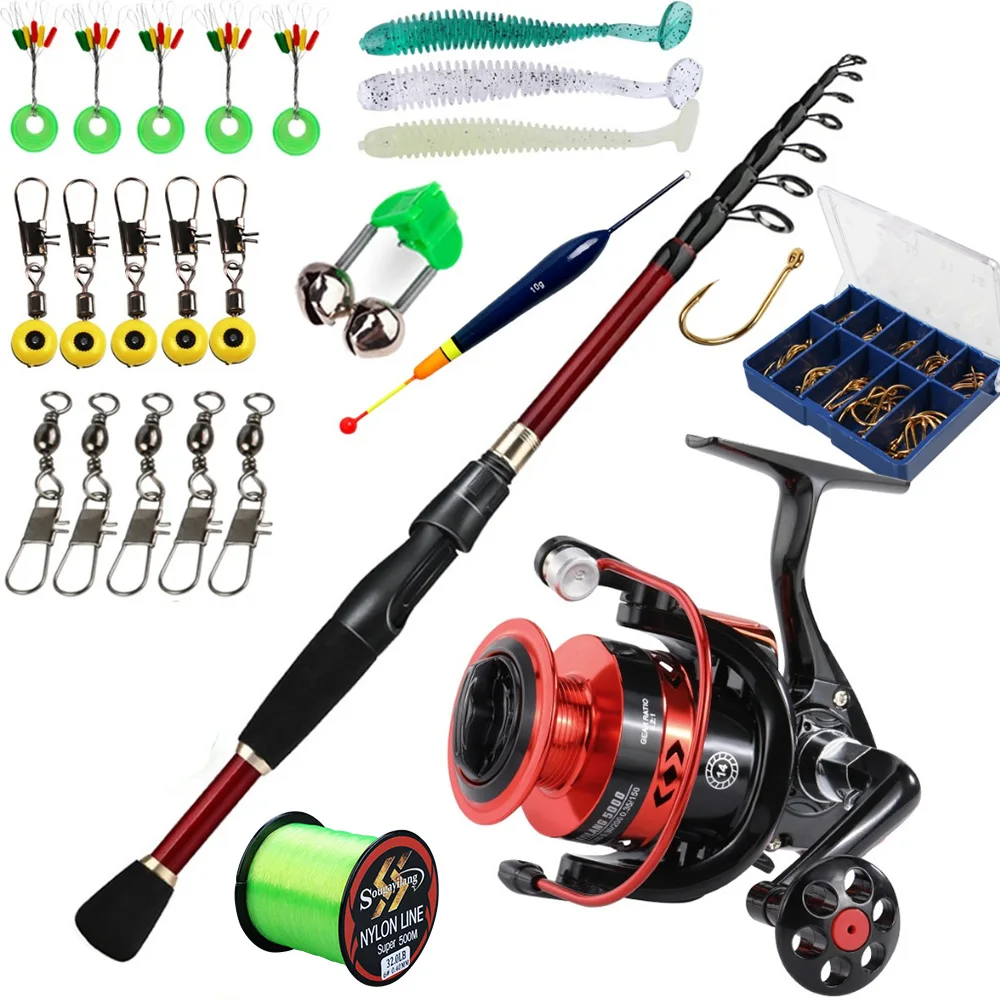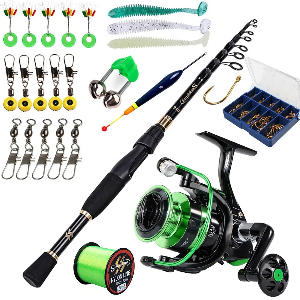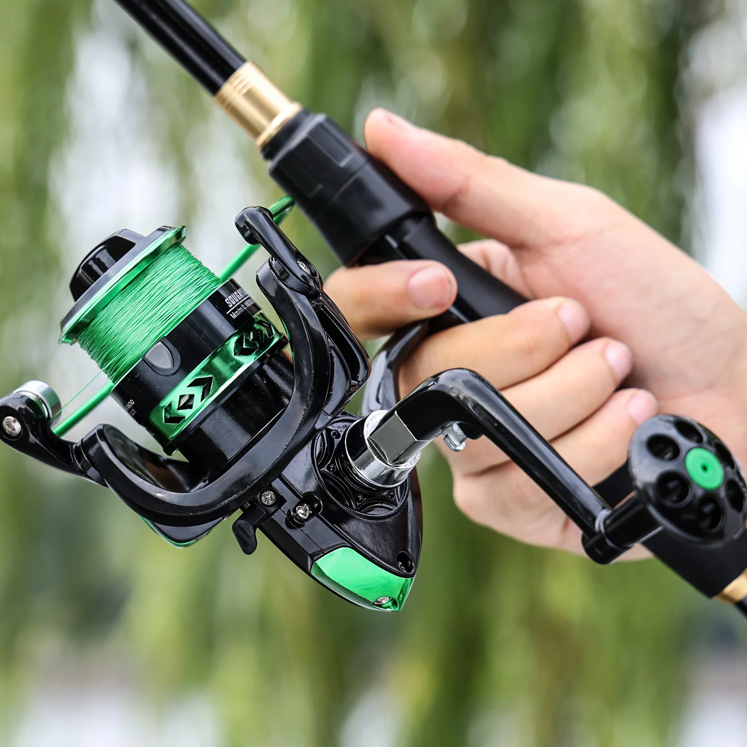 Juego de pesca giratoria Sougayilang 1,8-2,4 m caña de fibra de carbono 1000-4000 5,2: 1 carrete giratorio con línea de pesca de 500m y accesorios