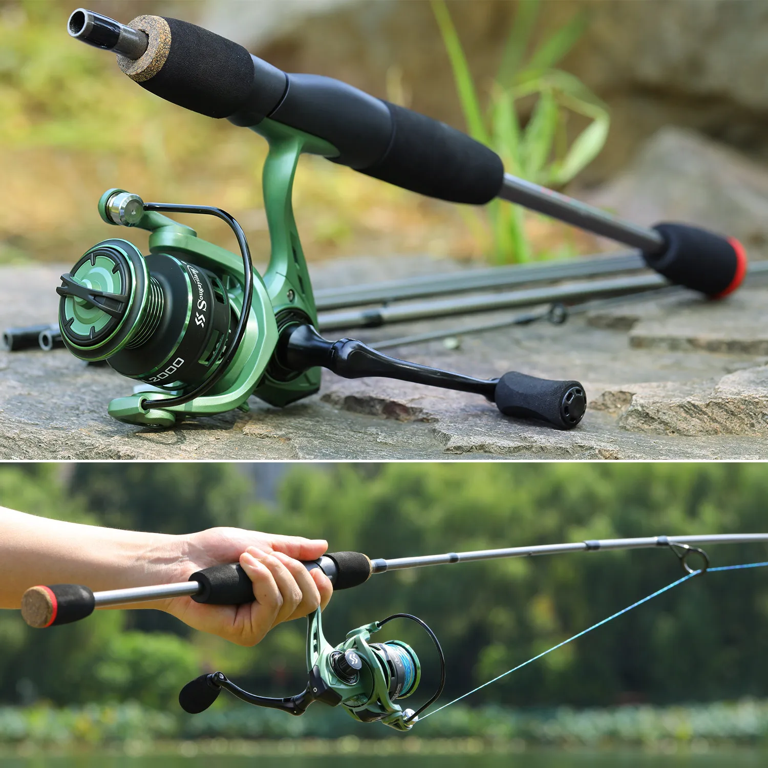 1 * caña de pescar + 1 * carrete de pesca + 1 * línea de pesca